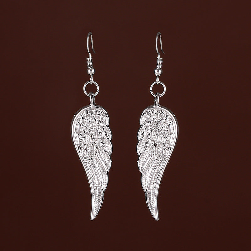 Silvery Angel Wings Dangle Earrings Retro Style Iron Jewelry