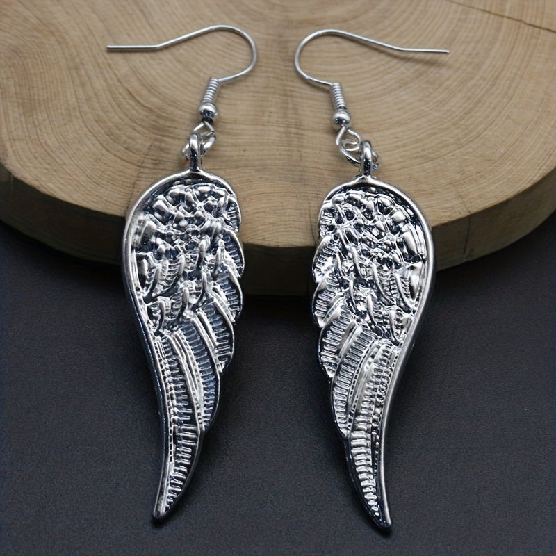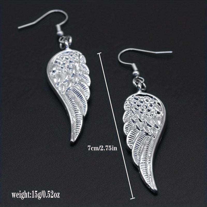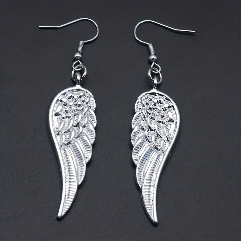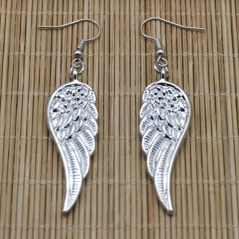 These elegant dangle earrings feature silvery angel wings in a retro style, perfect for daily casual wear. They are a great gift for women and girls.