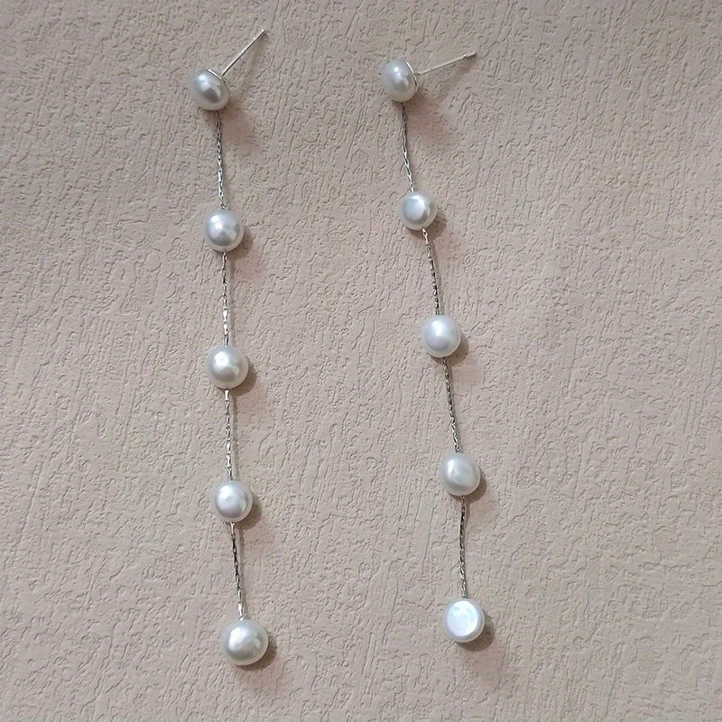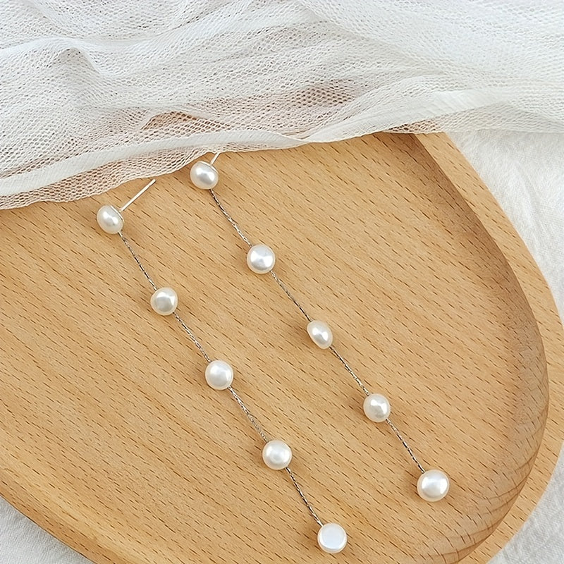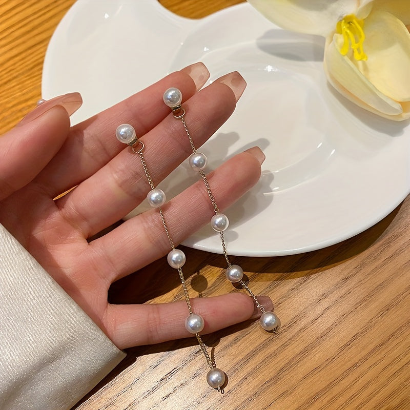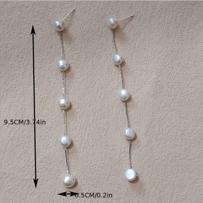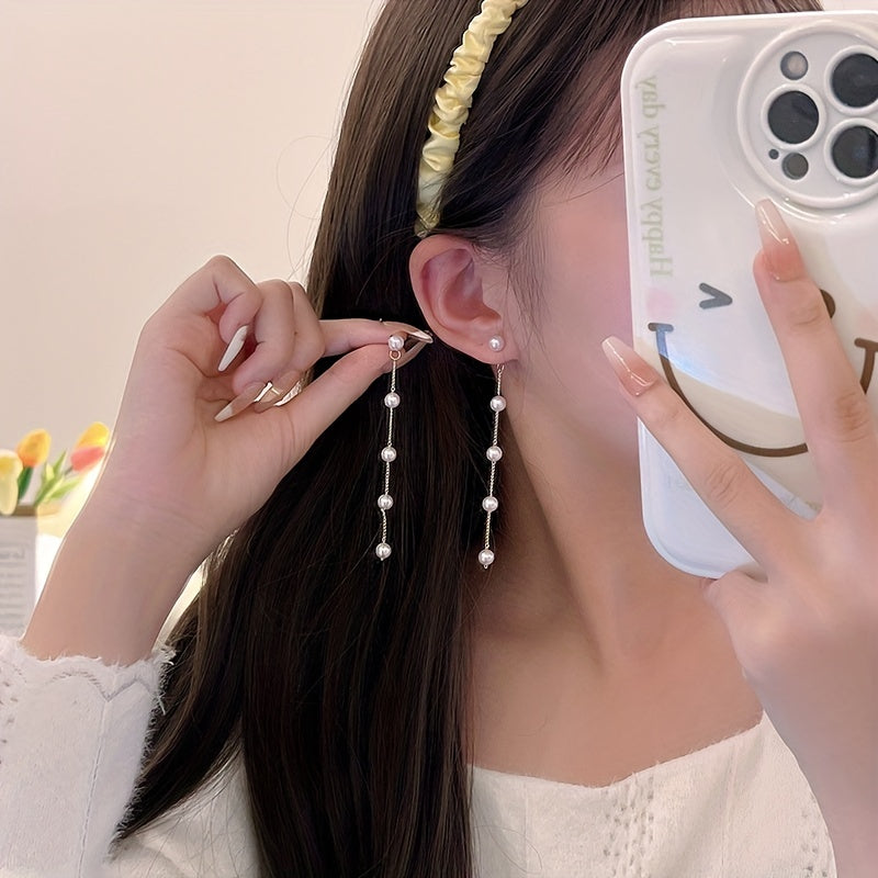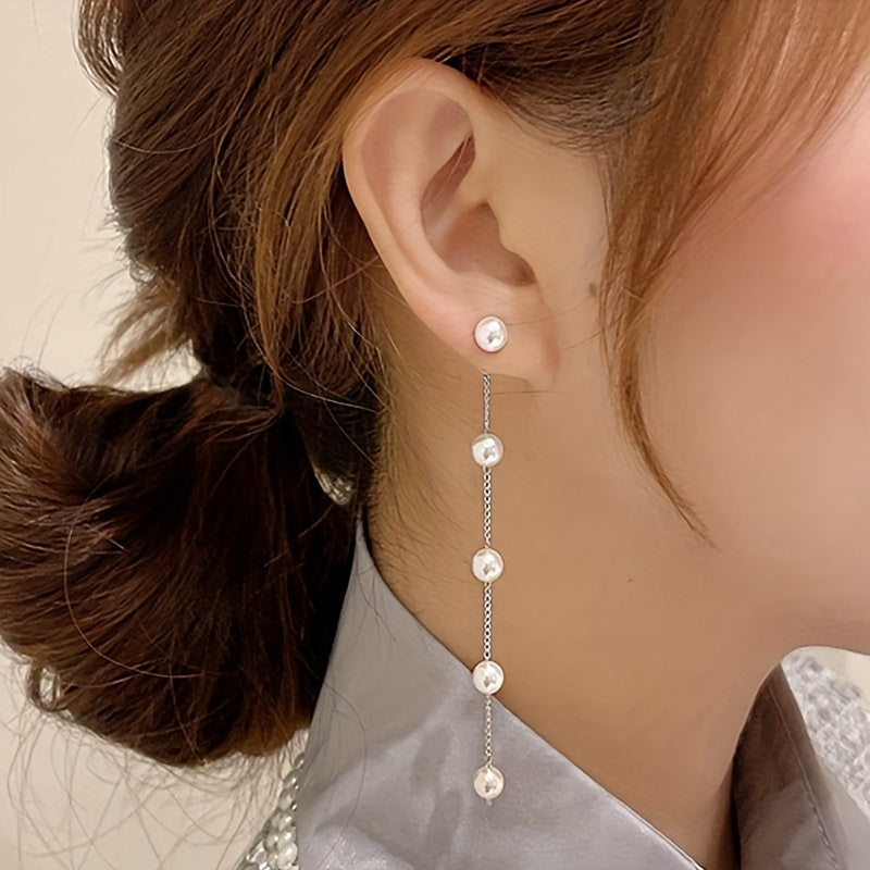 Elegant silvery chain earrings with faux pearl dangles, perfect for a retro-inspired look. Made of high-quality alloy, these earrings are delicate and ideal as a gift for any female.