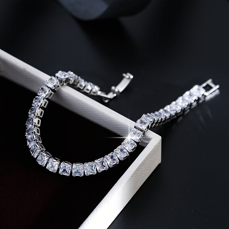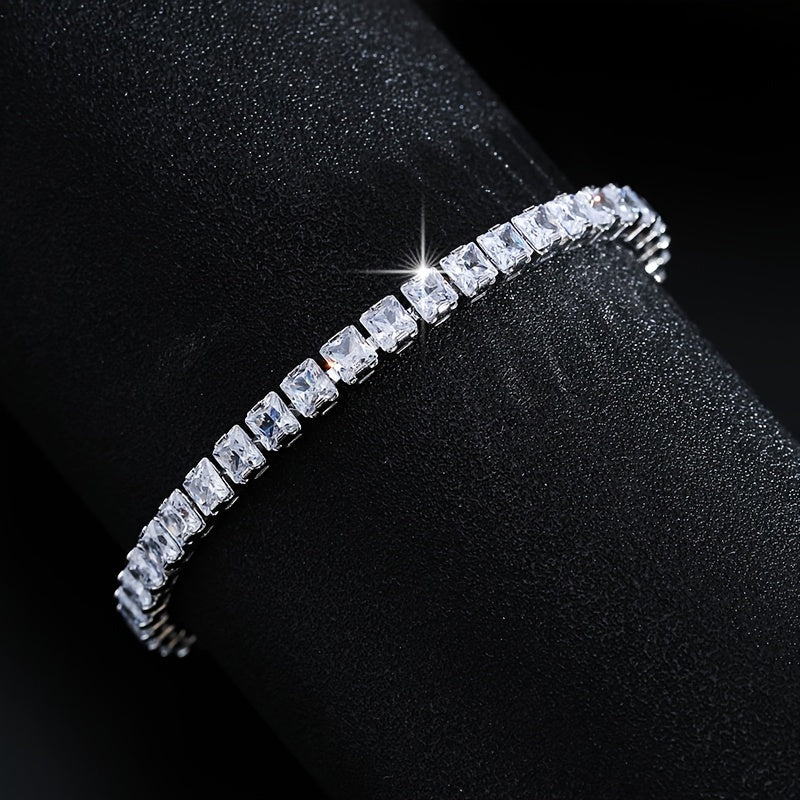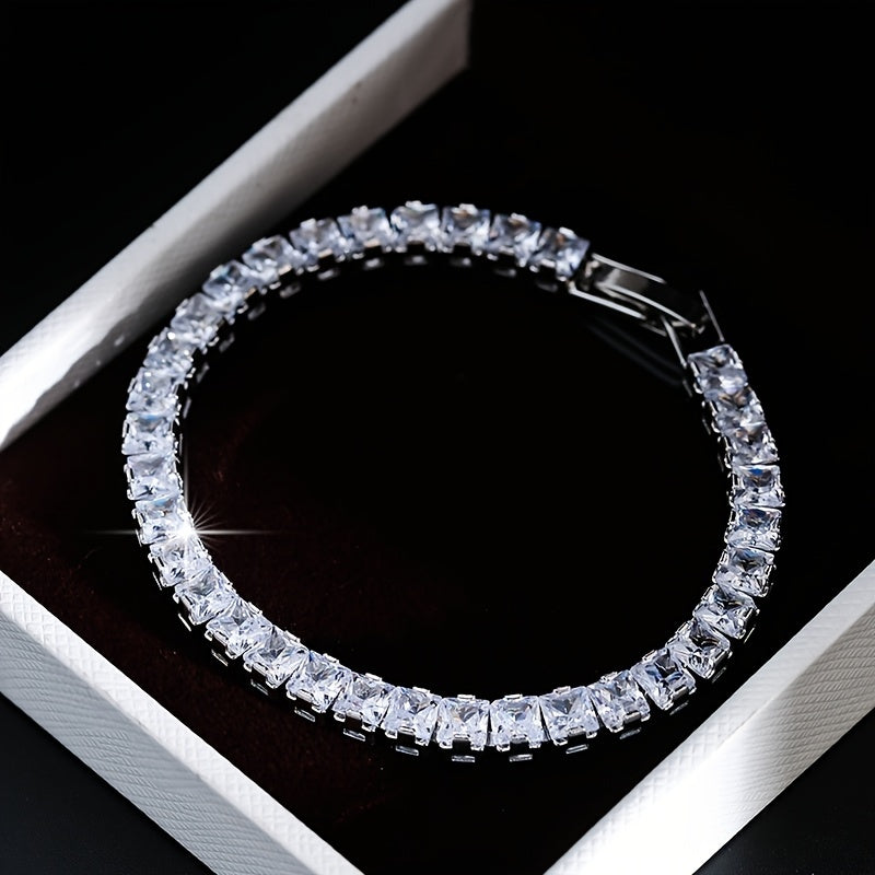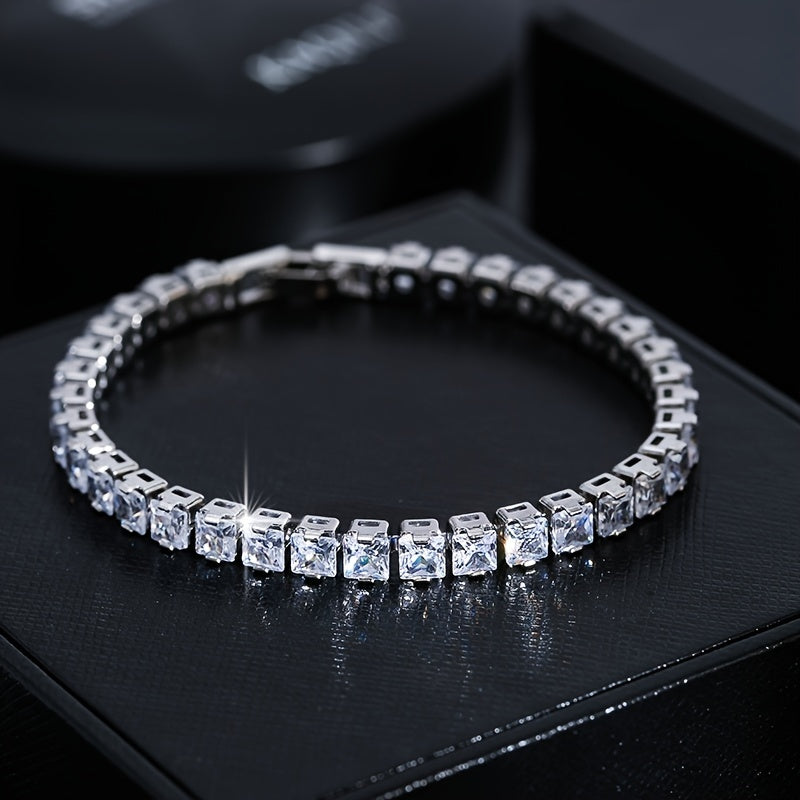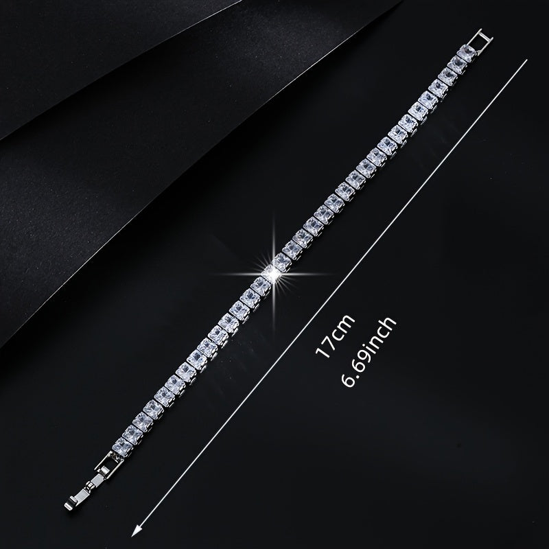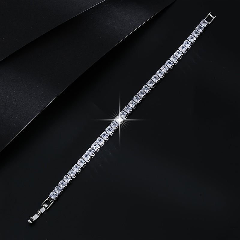 Elegant single row cubic zirconia tennis chain bracelet made of high-quality copper. Perfect hand jewelry gift for any occasion.