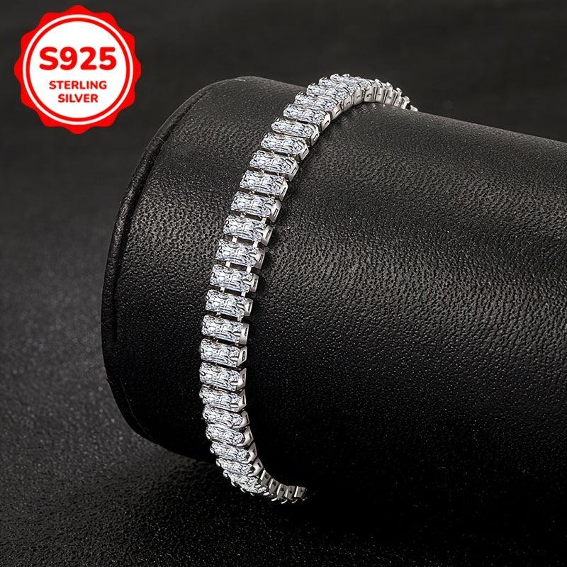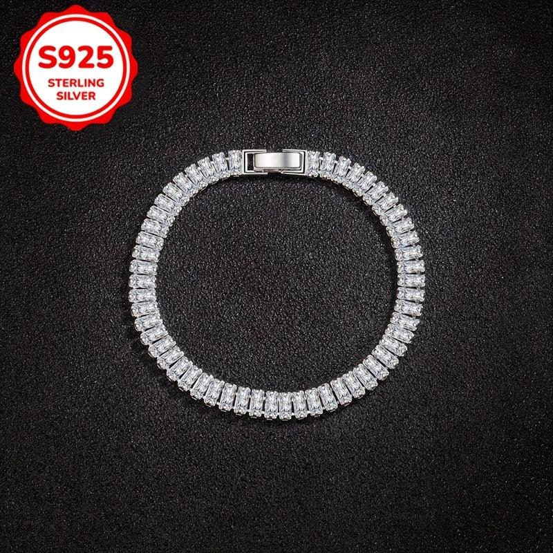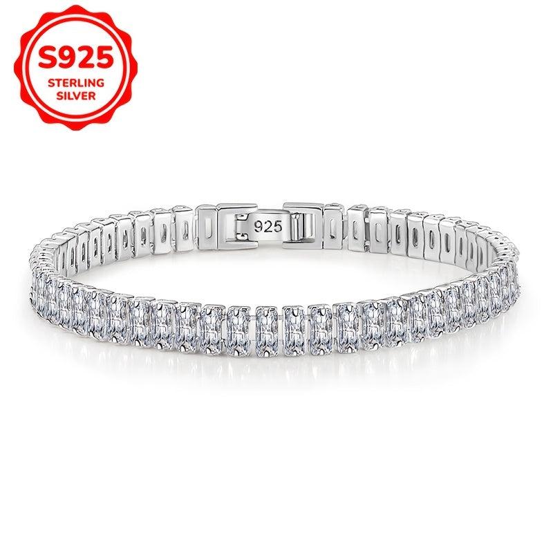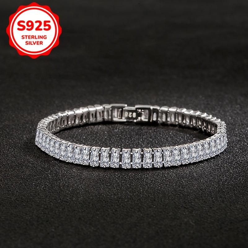 Elevate your style with this stunning 925 silver bracelet featuring sparkling cubic zirconia in a geometric square design. Perfect for parties and all season wear, this bracelet is a great gift for women.