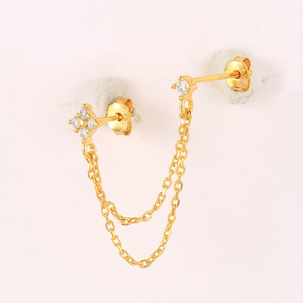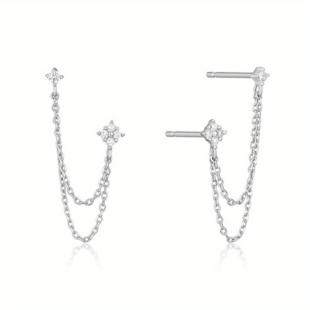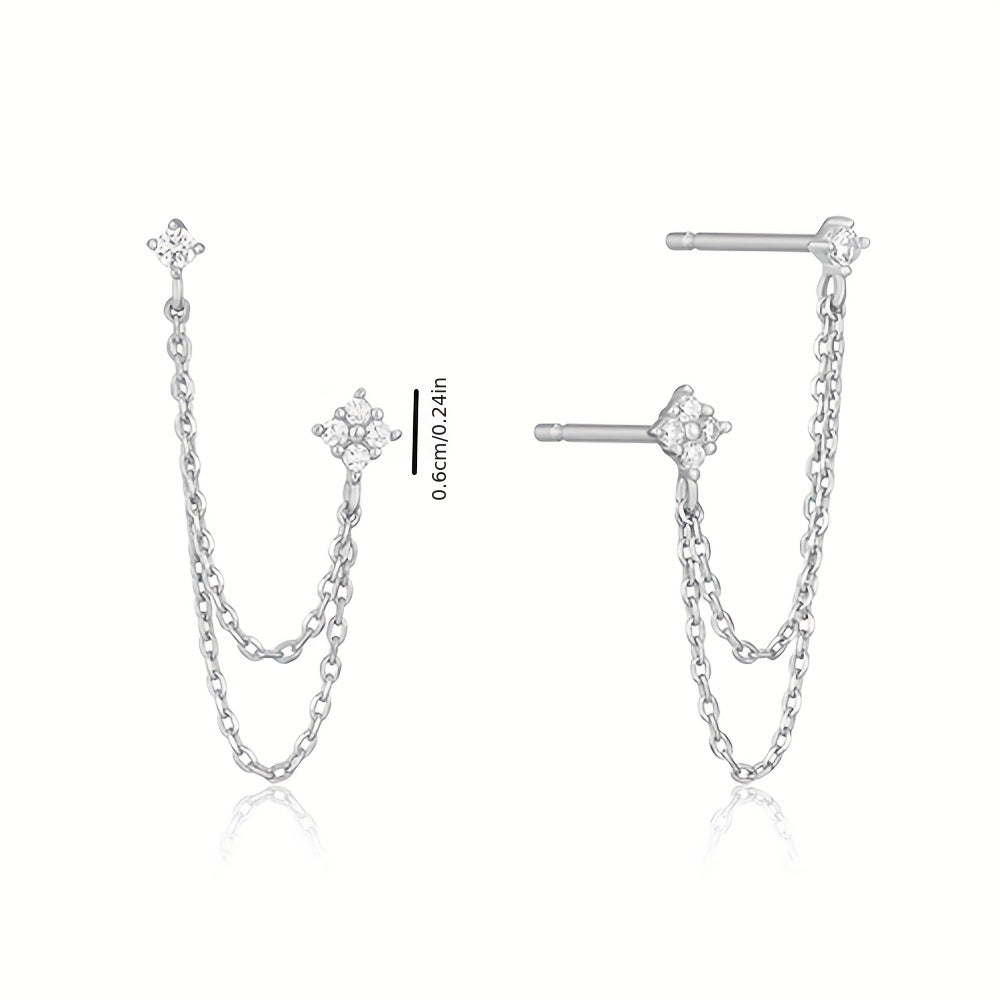 Sparkling Rhinestone Chain Stud Earrings Copper Silver Plated Jewelry