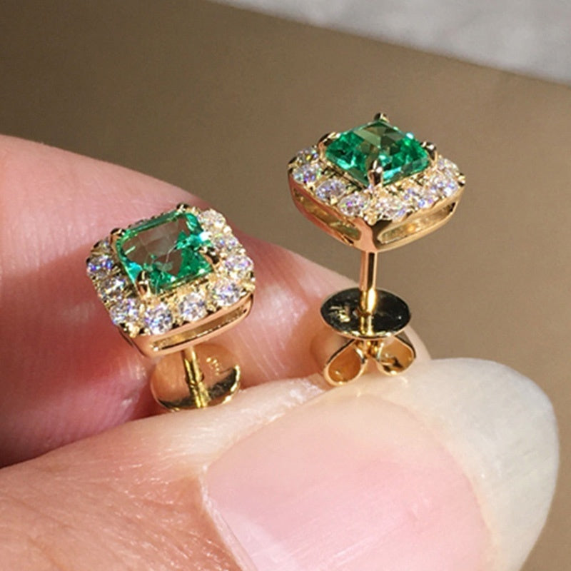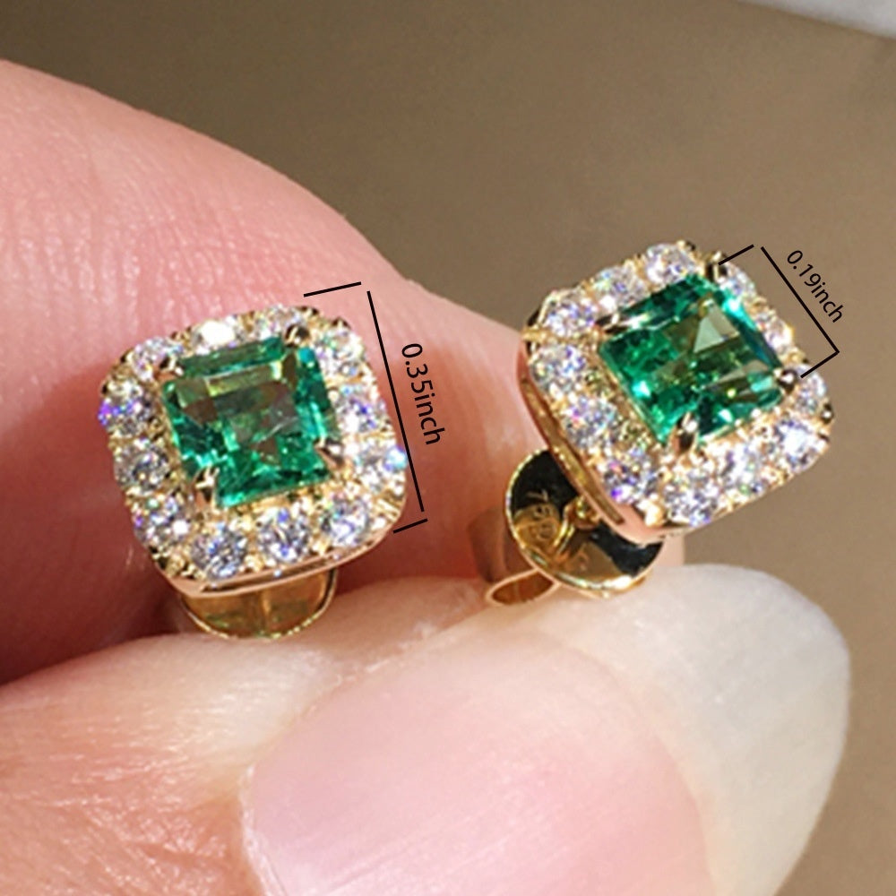 Enhance your style with these stunning 4 prong square cut emerald gemstone stud earrings. Perfect for daily wear, casual outings, or special occasions. These earrings are a great addition to your jewelry collection.