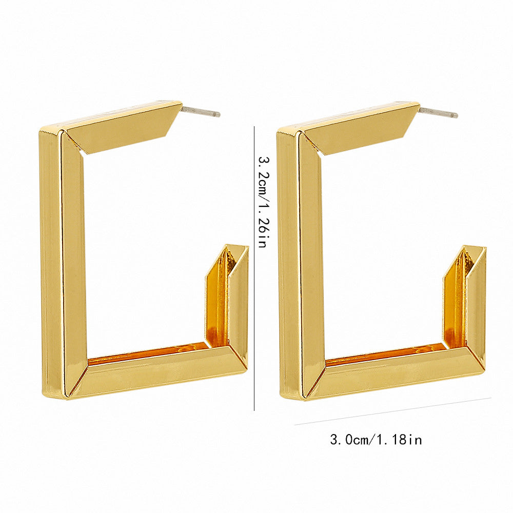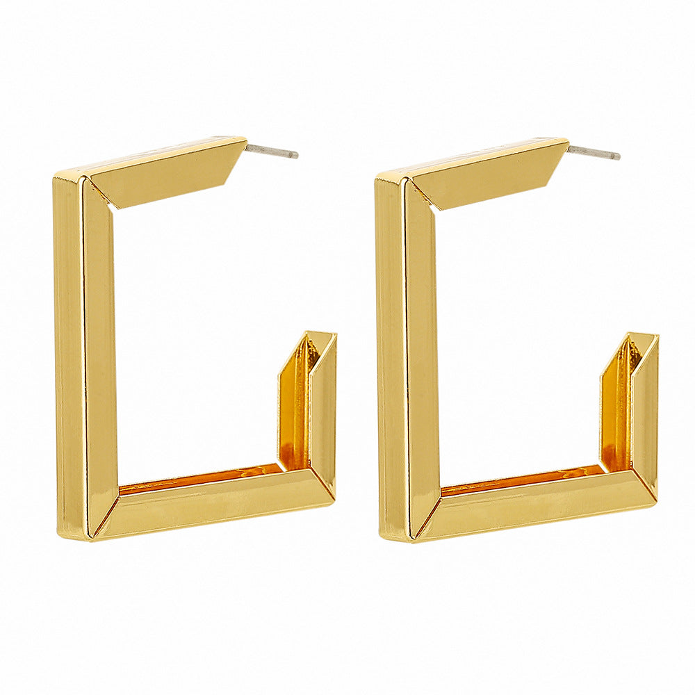 Add a touch of modern elegance to your look with these square hoop earrings. Made with 18K gold plating, these geometric earrings are the perfect accessory for a stylish and sophisticated outfit.