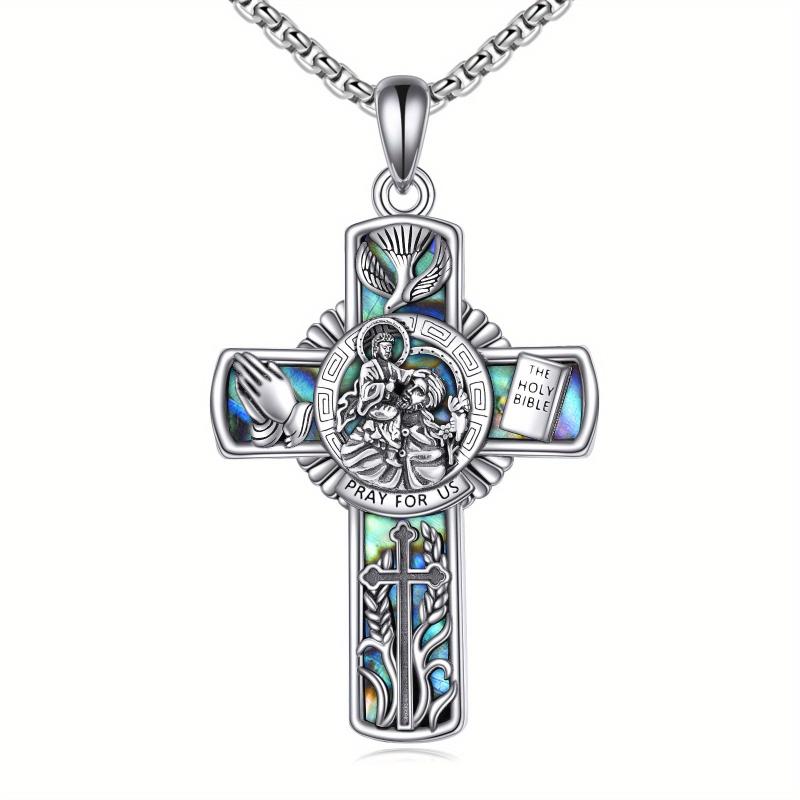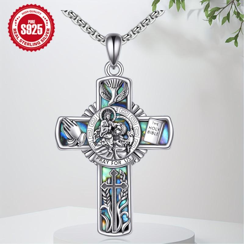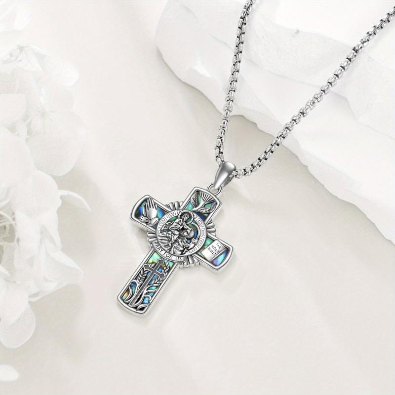 This Saint Christopher cross necklace is made of sterling silver, perfect for both women and men. It features a religious protector pendant of St. Christopher, offering both style and spiritual significance.