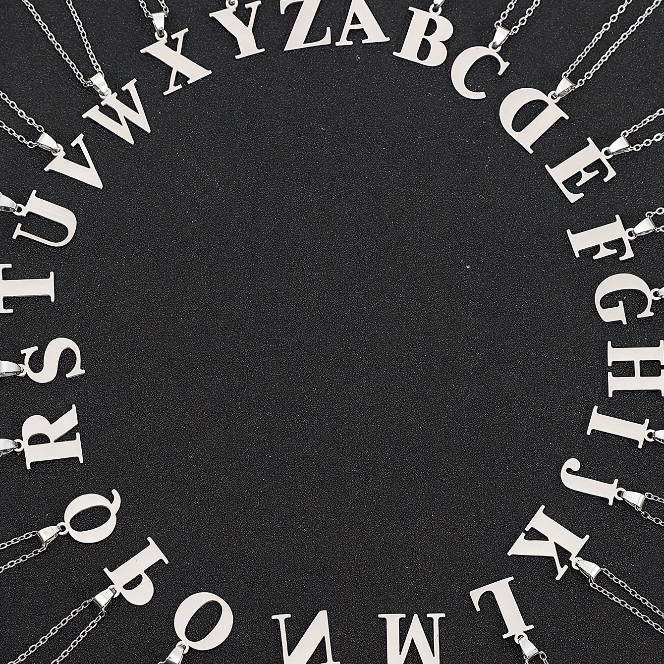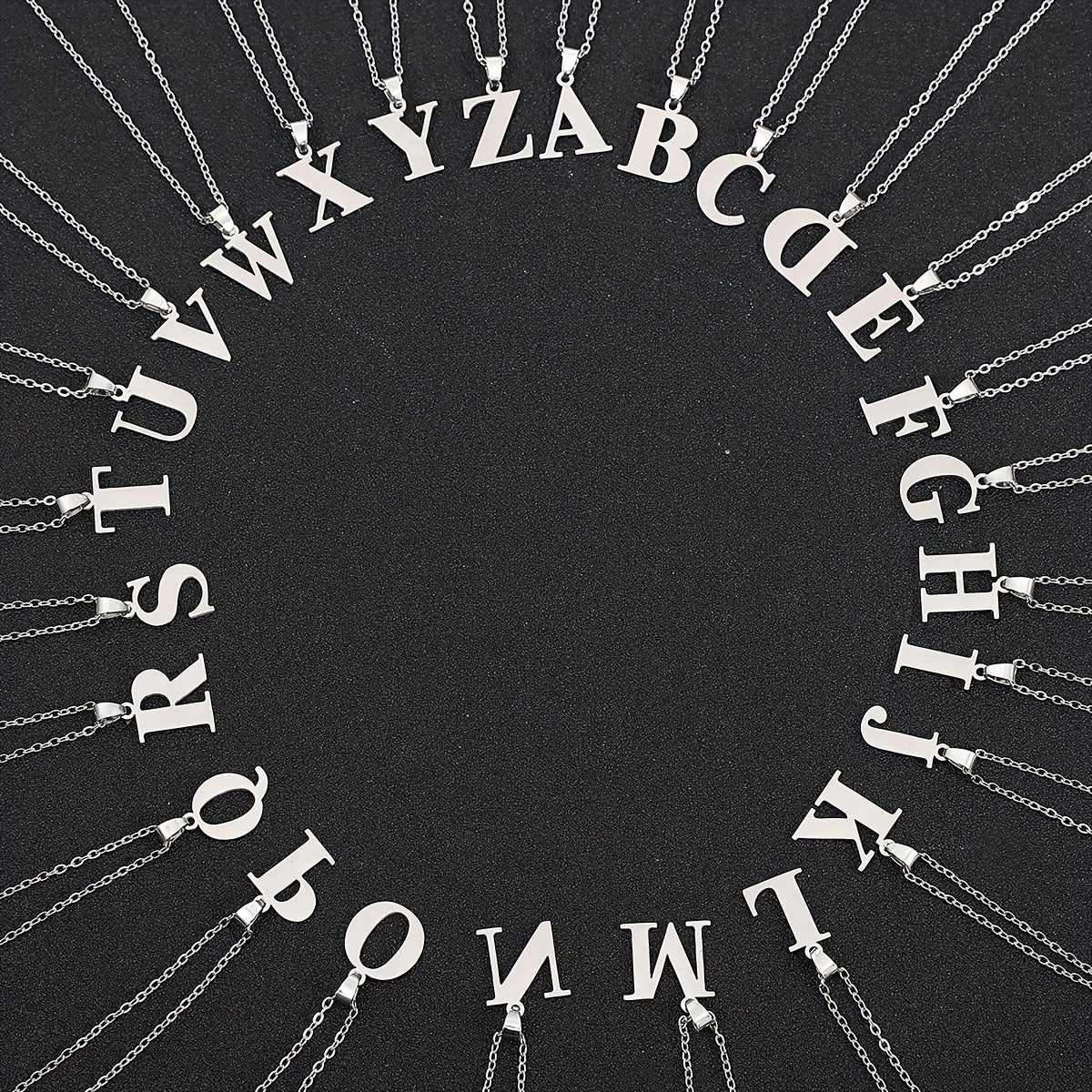 Stainless Steel Initial Alphabet Pendant Necklace Jewelry Alphabet Tag