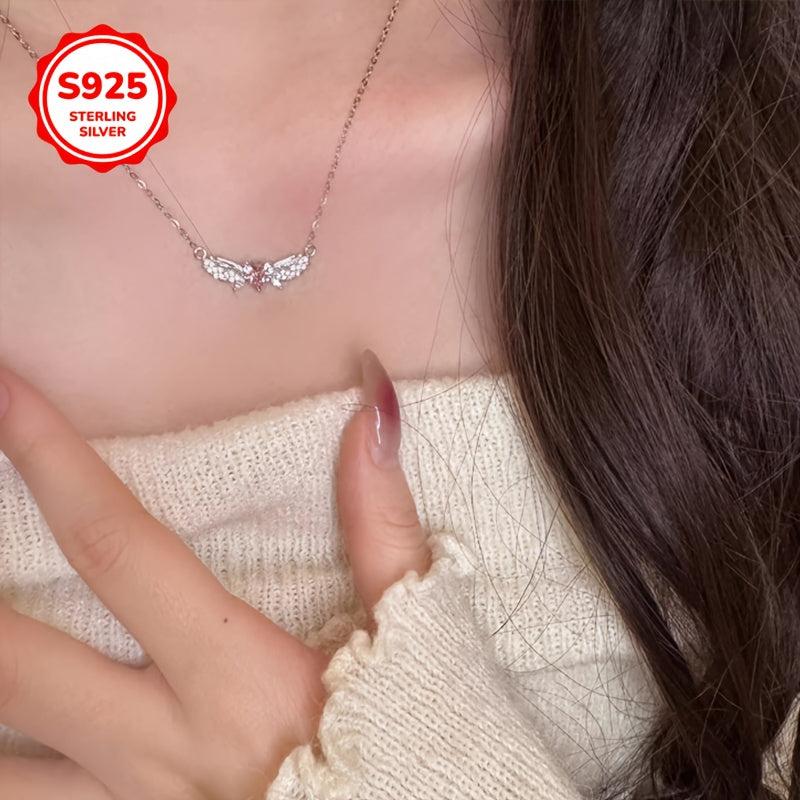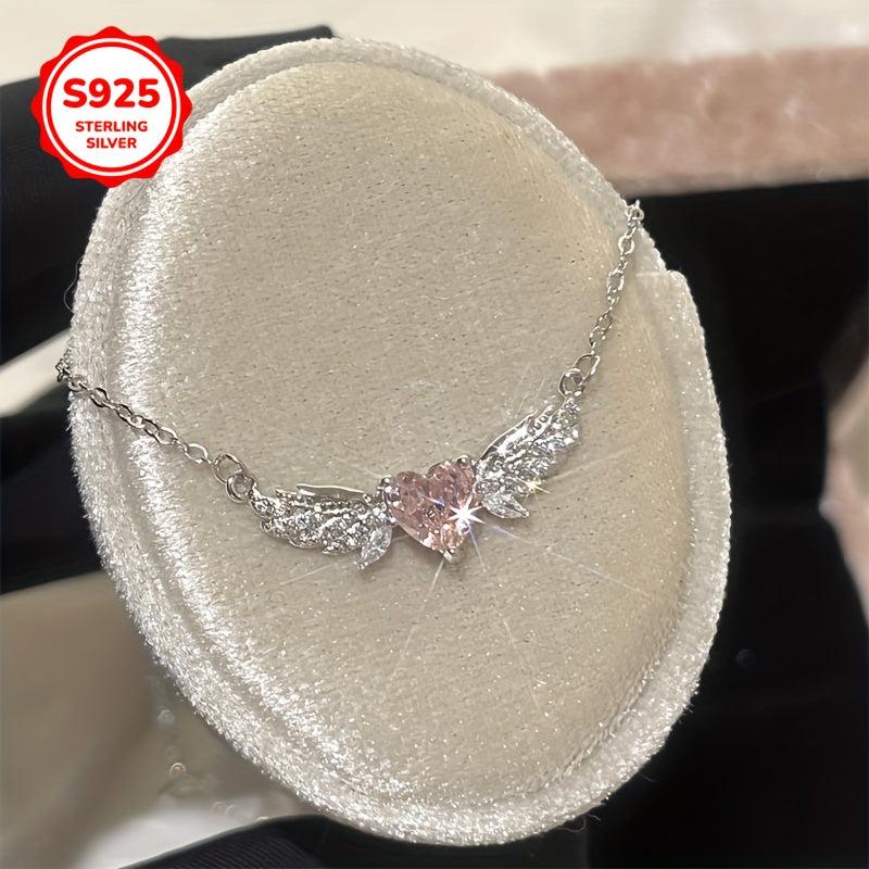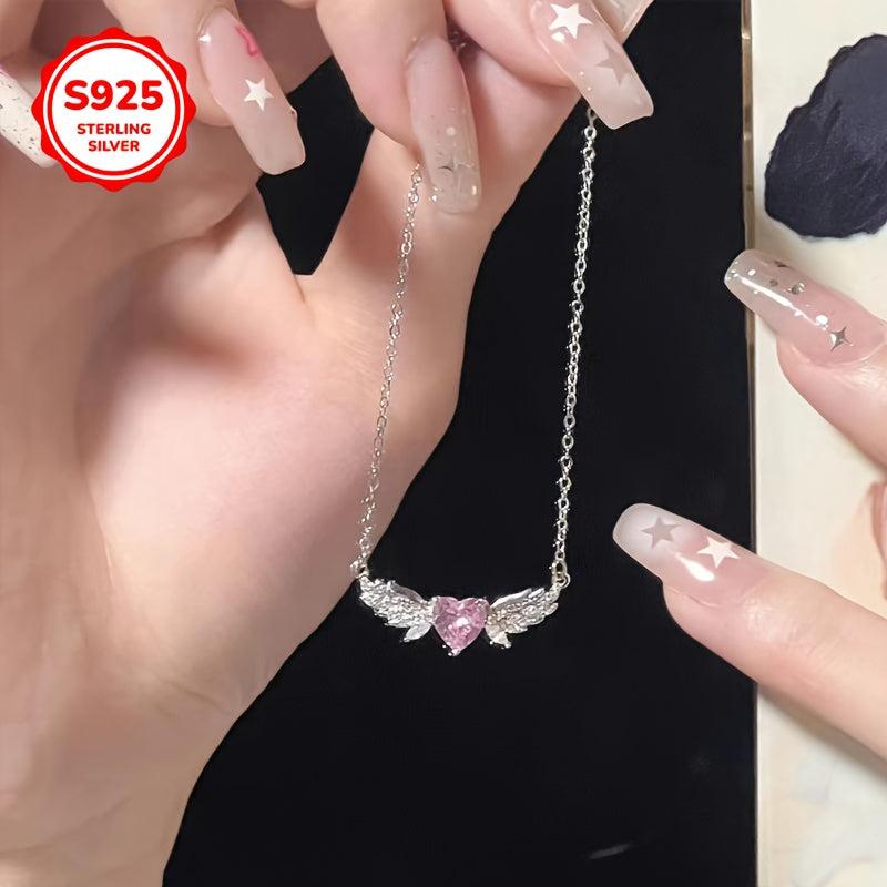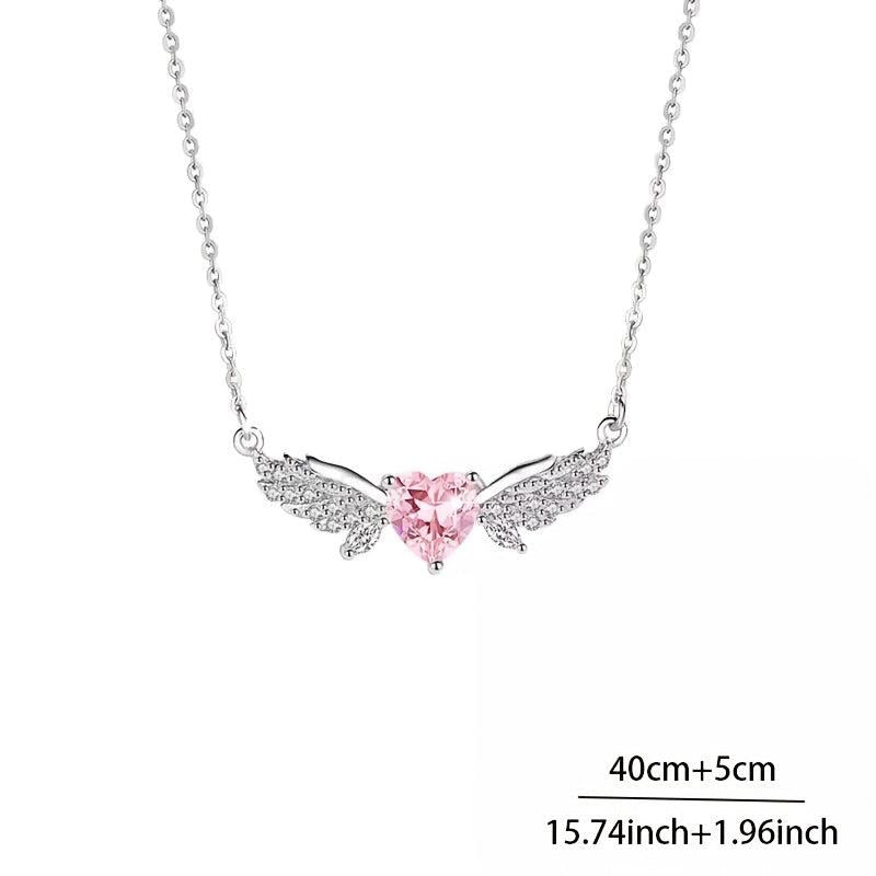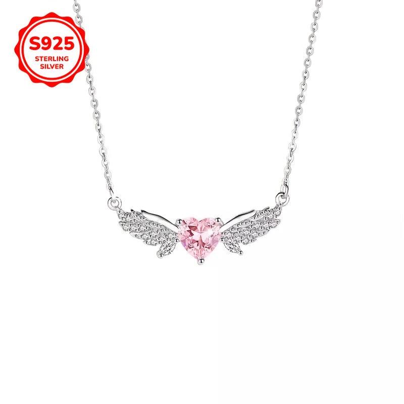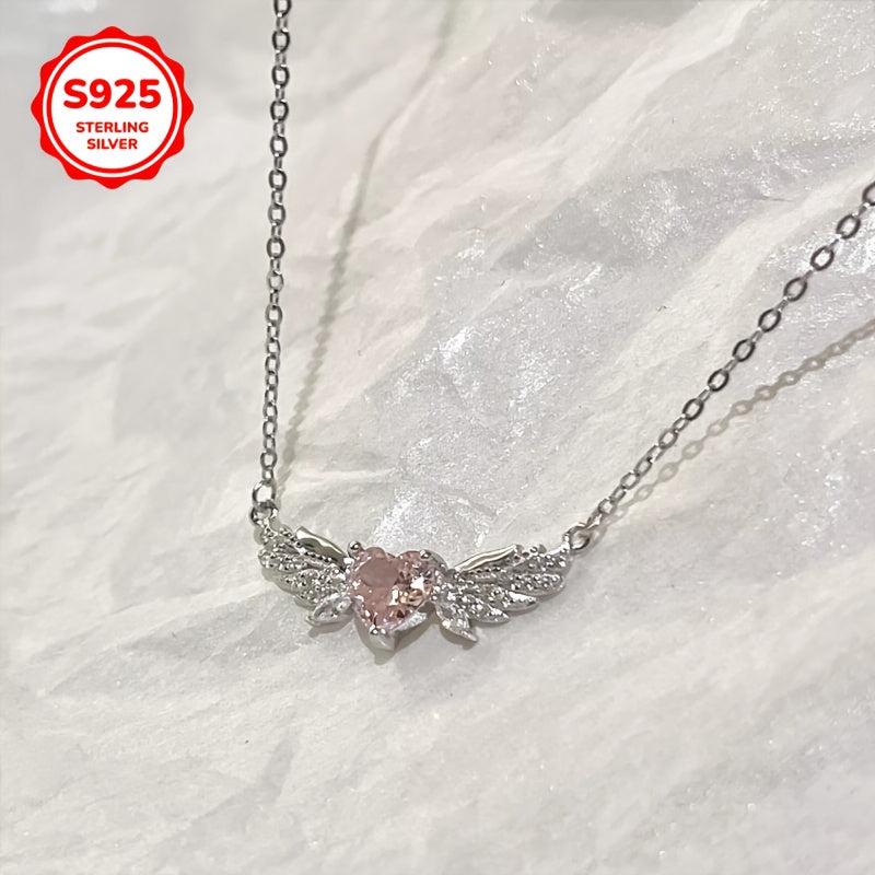 This sterling silver pendant necklace features angel wings in a heart shape with sparkling accents. A versatile and stylish piece of everyday jewelry that makes a thoughtful gift for any occasion.