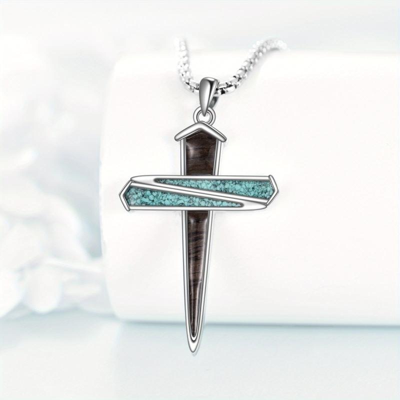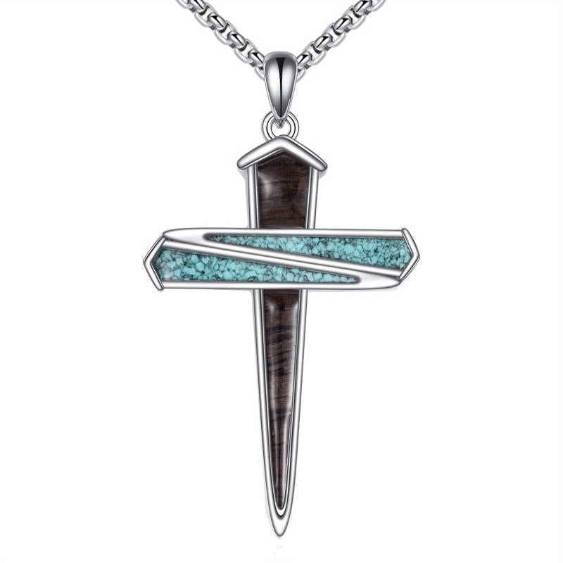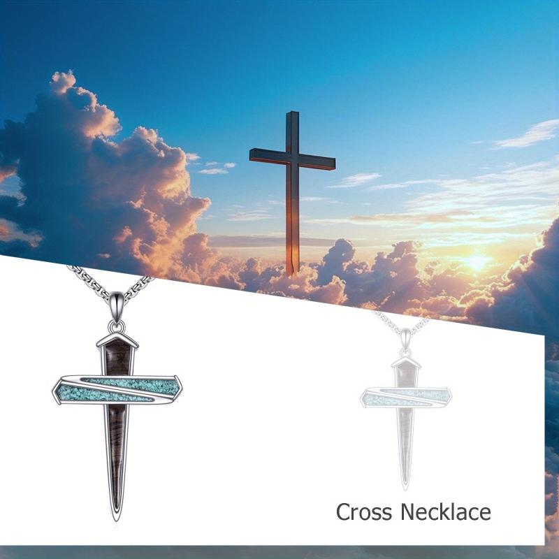 This beautiful cross necklace is made of sterling silver and features a unique design with nails. Perfect for both men and women.