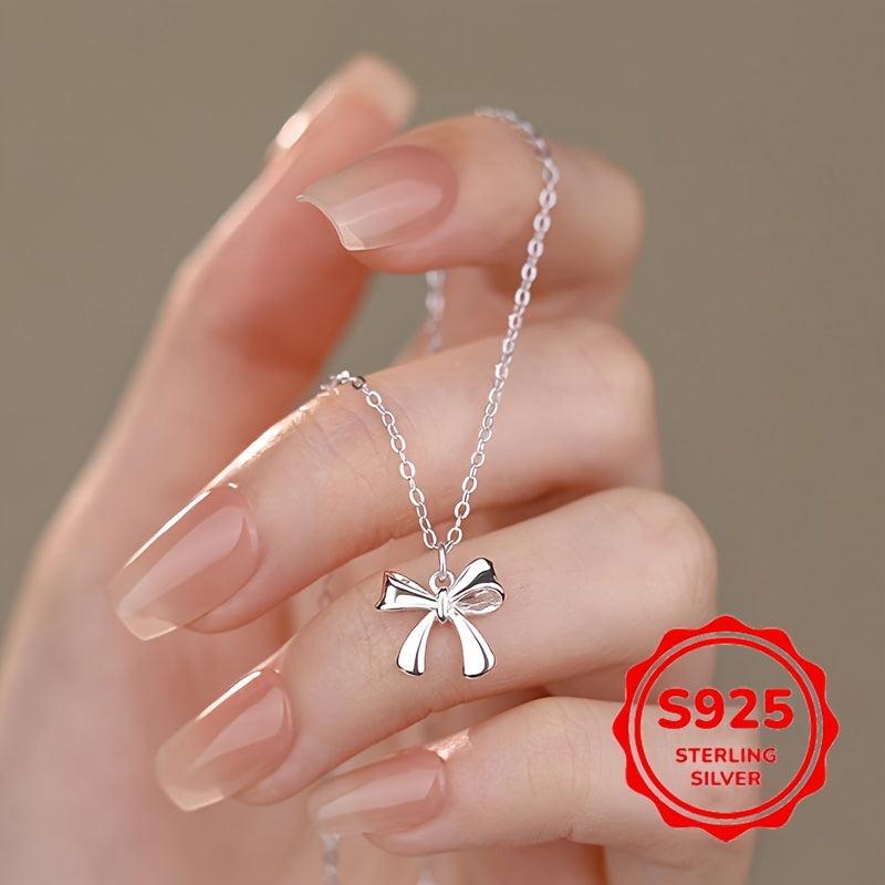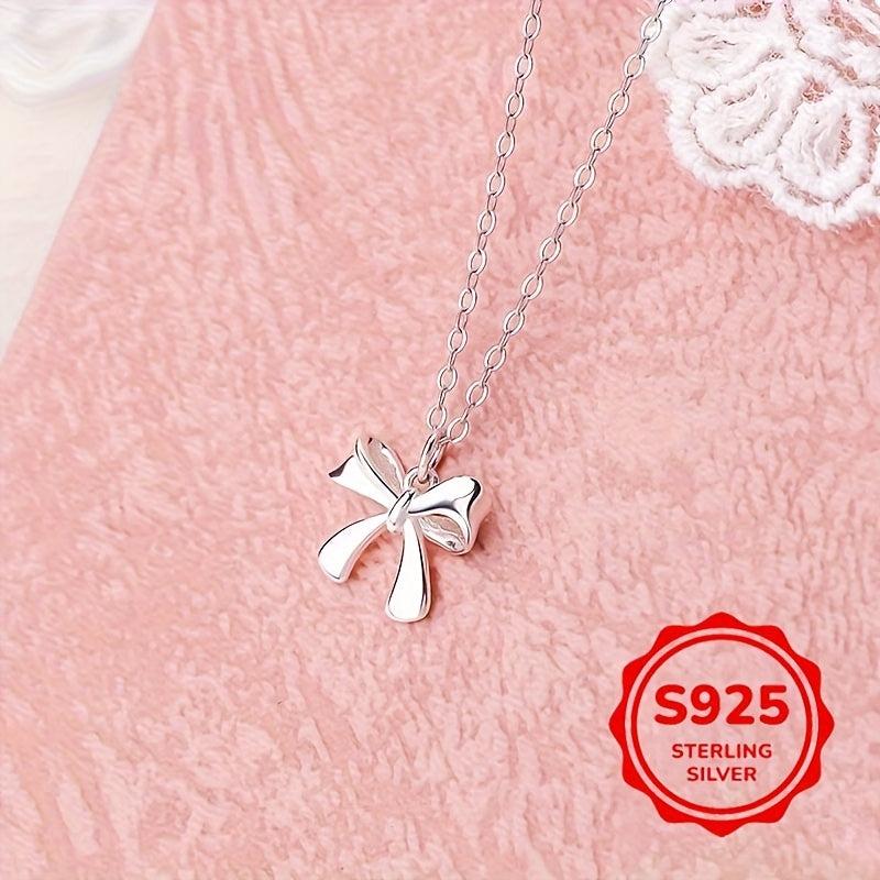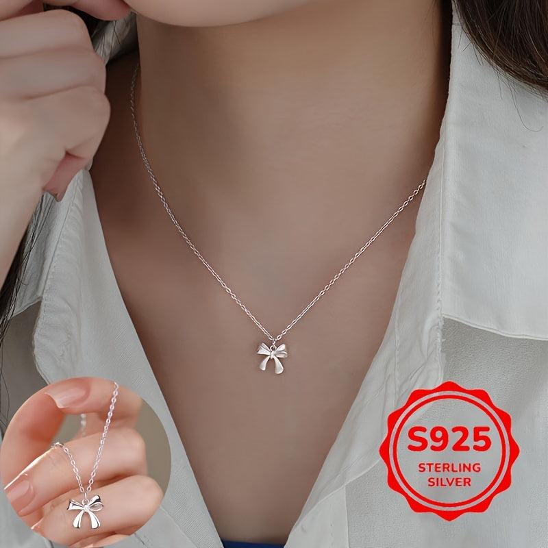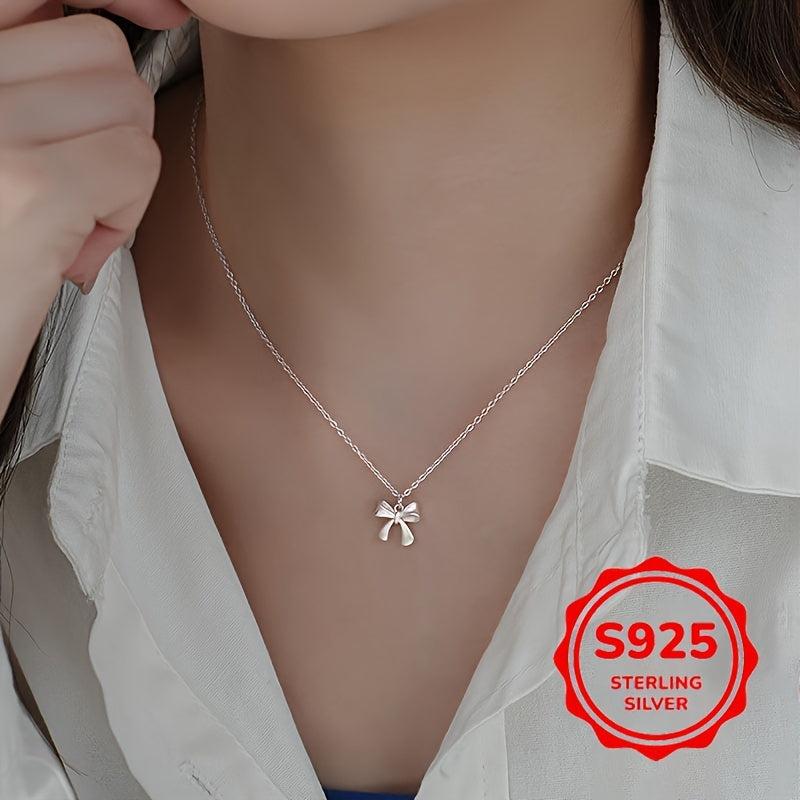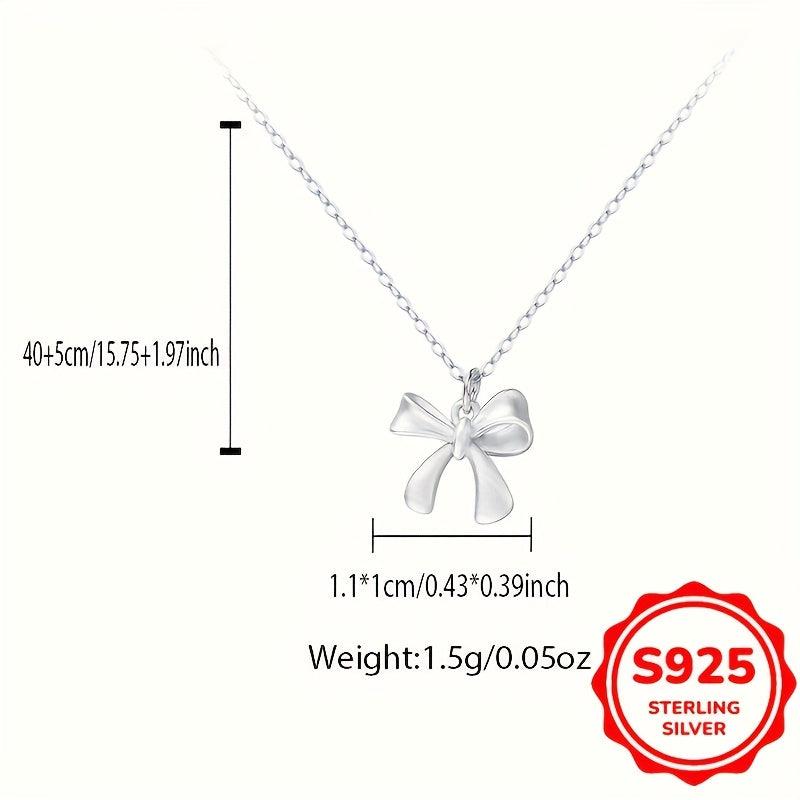 This 1 5G S925 silver bowknot necklace is a versatile accessory that adds a touch of elegance to any outfit. Perfect for daily wear and makes a sweet gift for holidays.