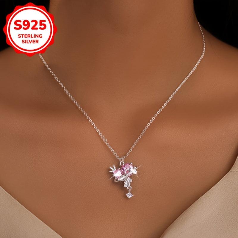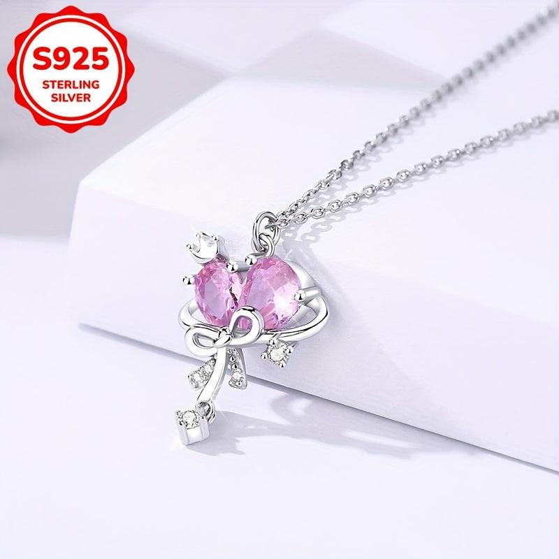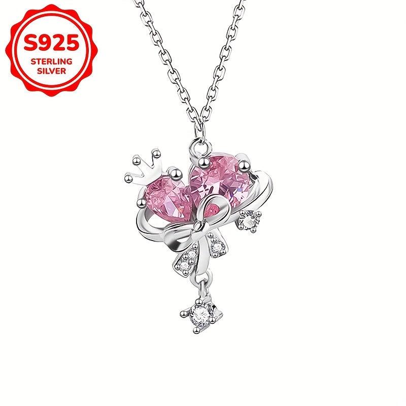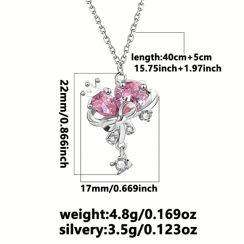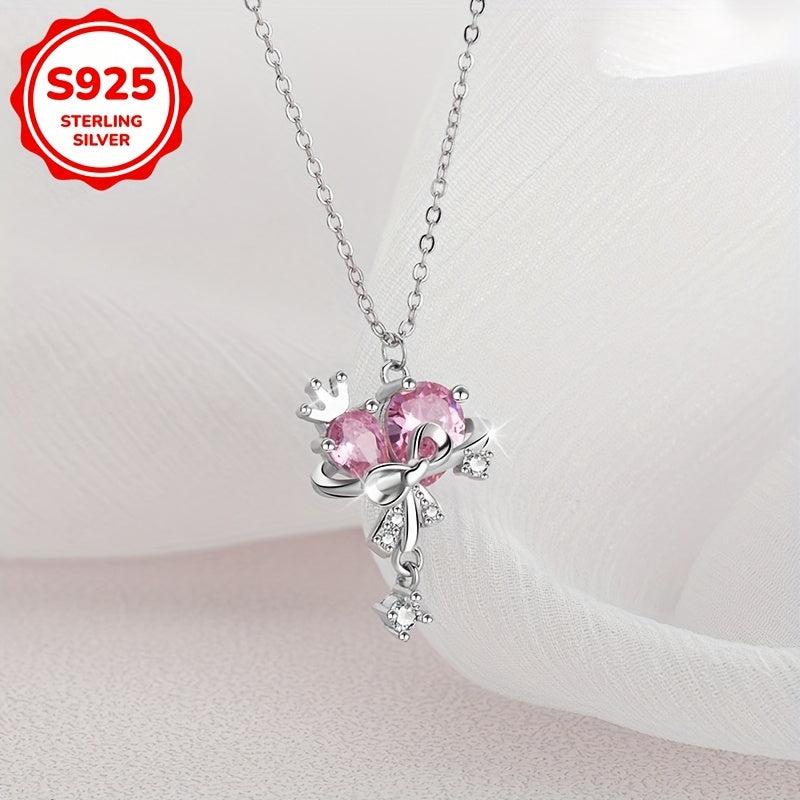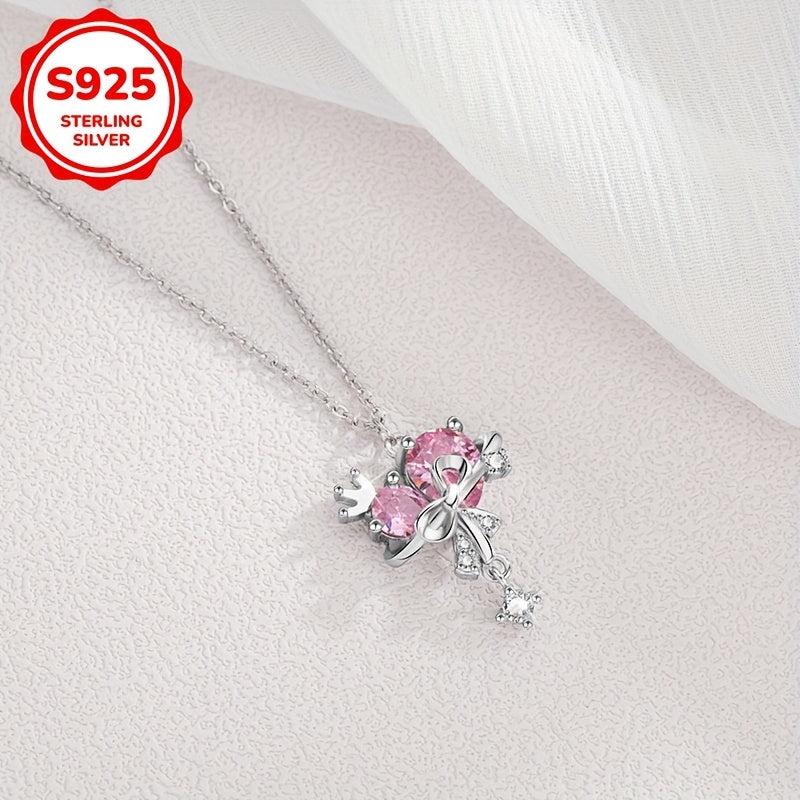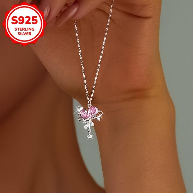 This sweet necklace features a pink love bowknot pendant made of 925 silver with synthetic zirconia inlay. Perfect for daily wear or as a couple gift for the holidays.