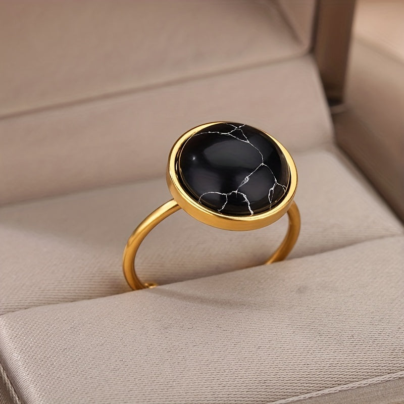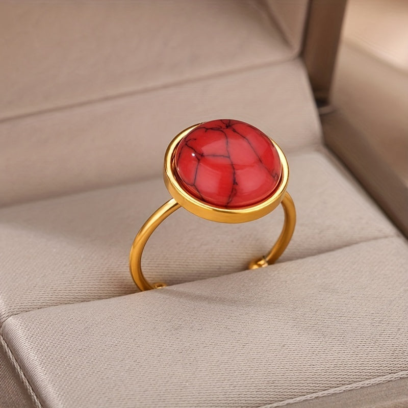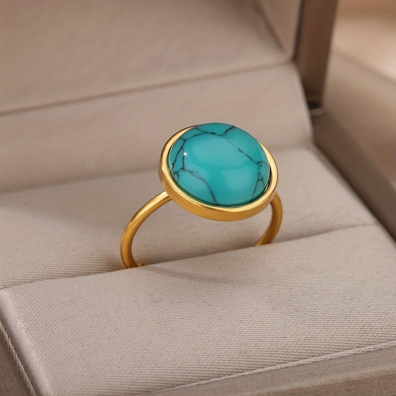 Elevate your daily outfits or party look with this stunning ring featuring a round turquoise stone inlaid. Choose from a variety of colors to match your style.