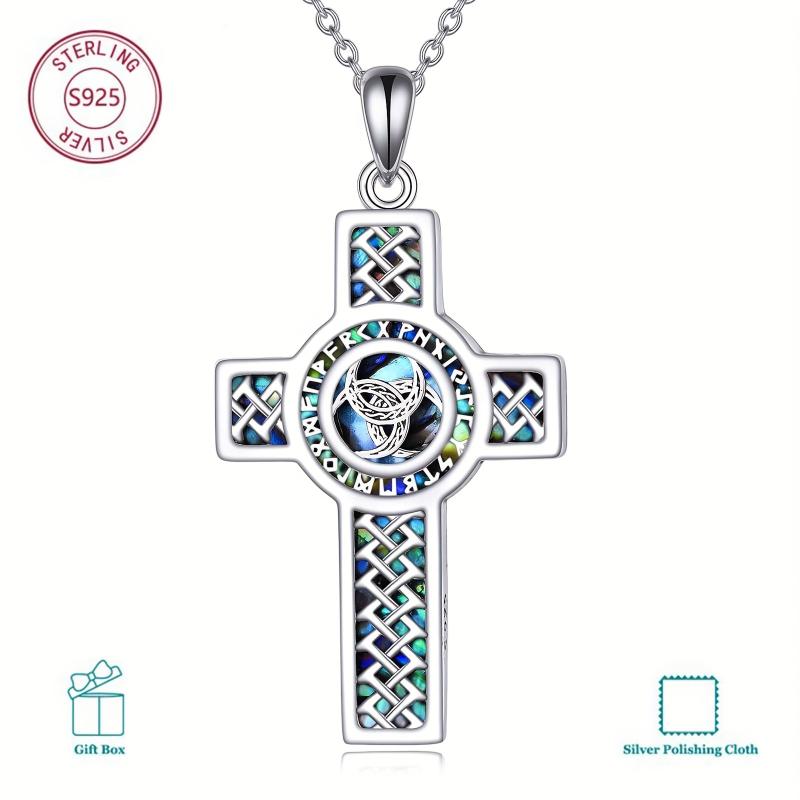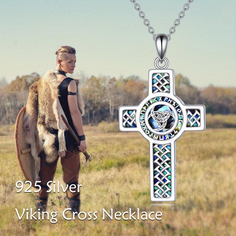 This Viking Cross Necklace features a beautiful Celtic knot pendant design, perfect for both women and men. The necklace represents Viking religious symbolism with a Triple Horn charm.
