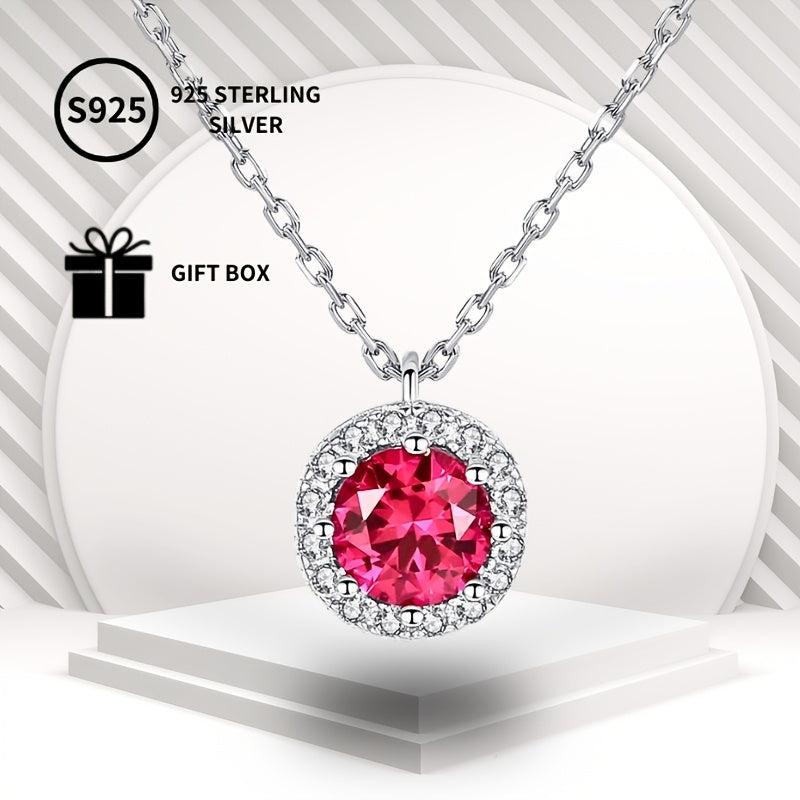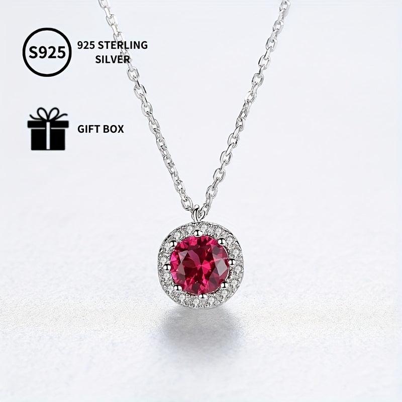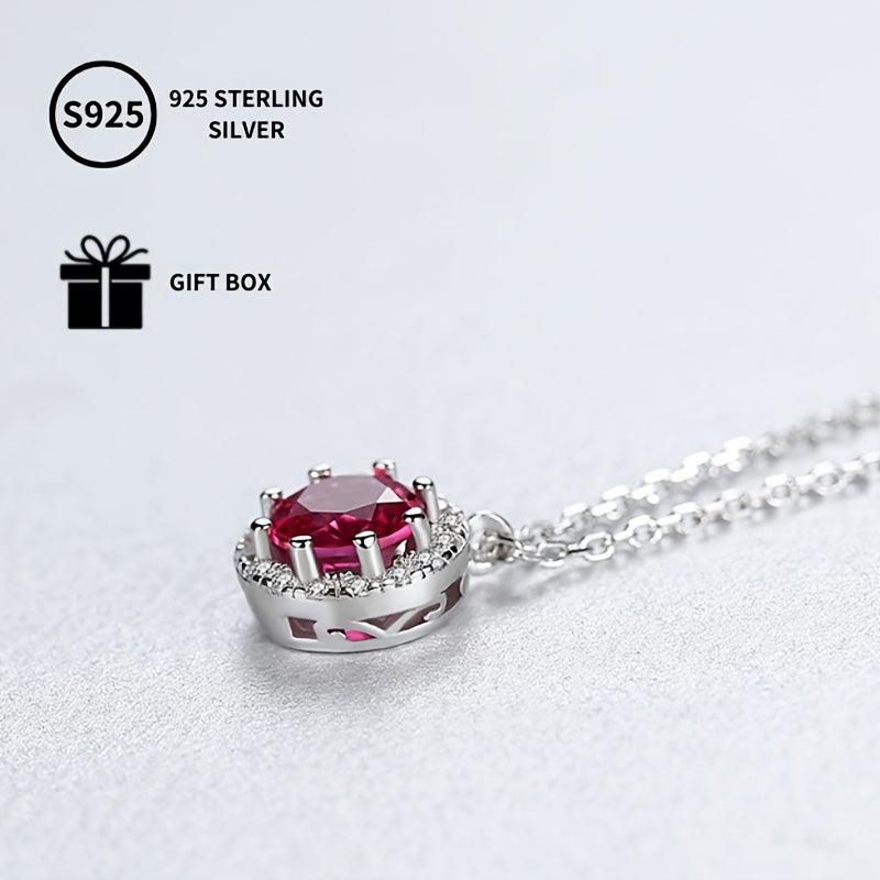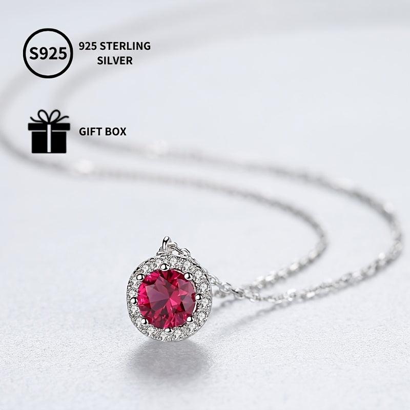 Elegant silver pendant necklace with red gemstone, perfect for parties, banquets, and Christmas celebrations. A versatile accessory that adds a classic touch to any outfit.