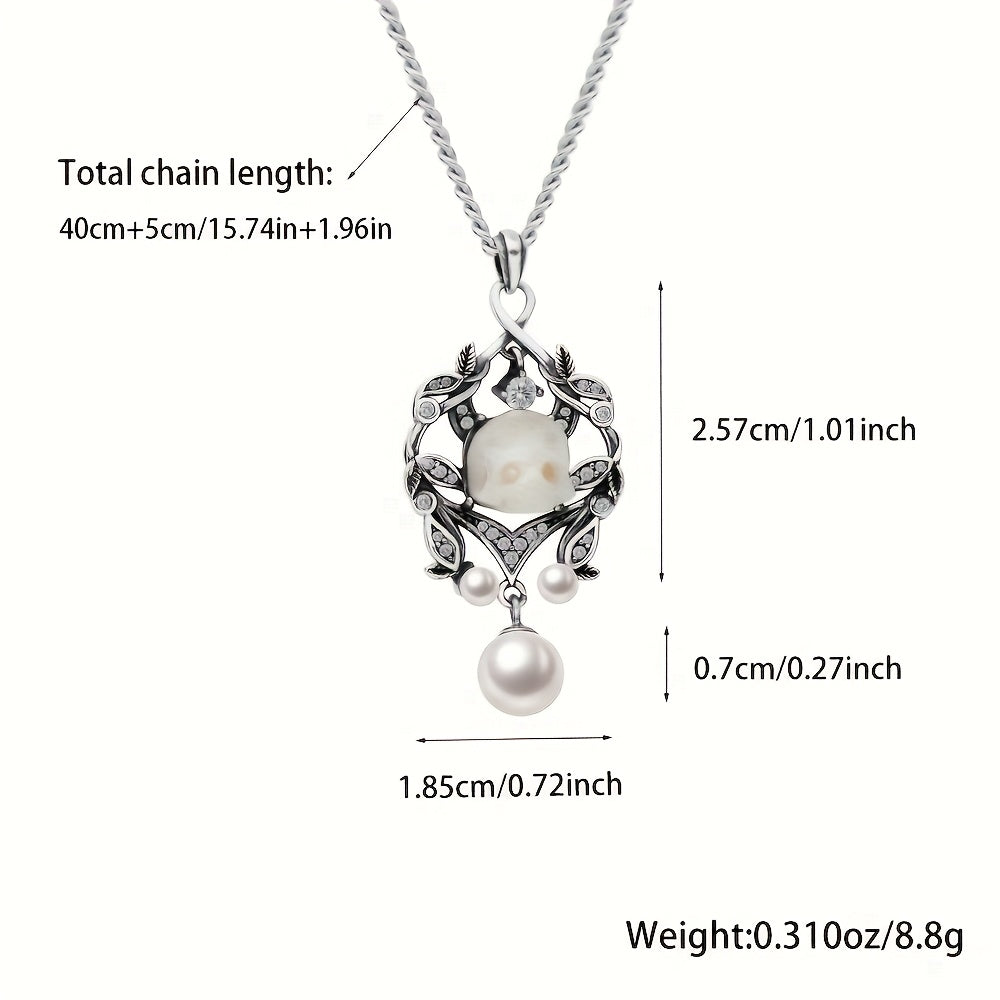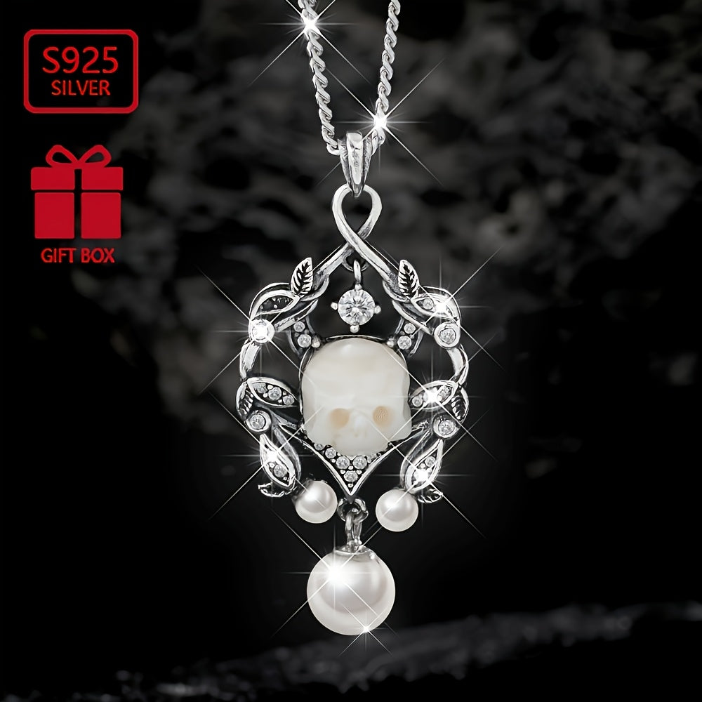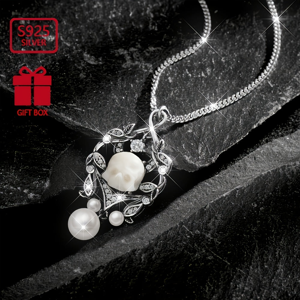 Hip hop style pendant necklace crafted from 925 sterling silver, adorned with synthetic zirconia and pearl accents. Ideal for parties, music events, and Halloween costumes.