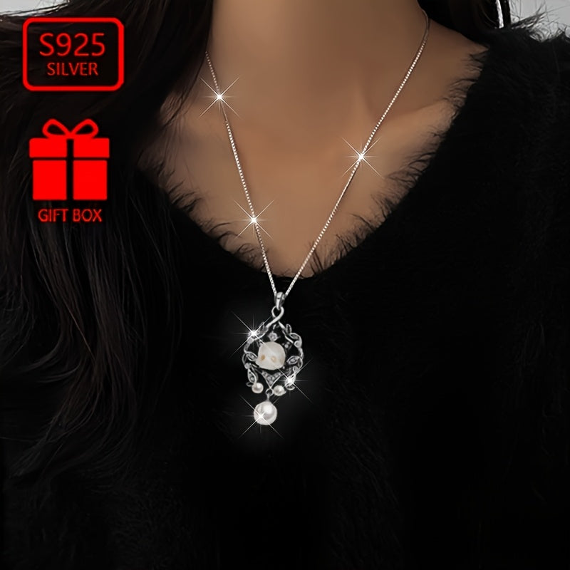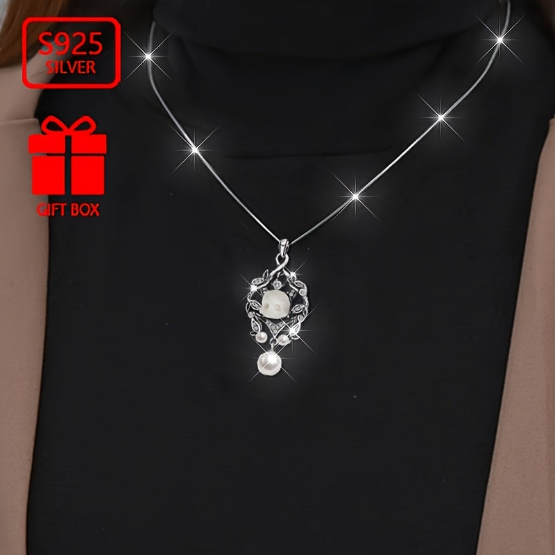 Vintage 925 Silver Pendant Necklace with Zirconia & Pearl Accents