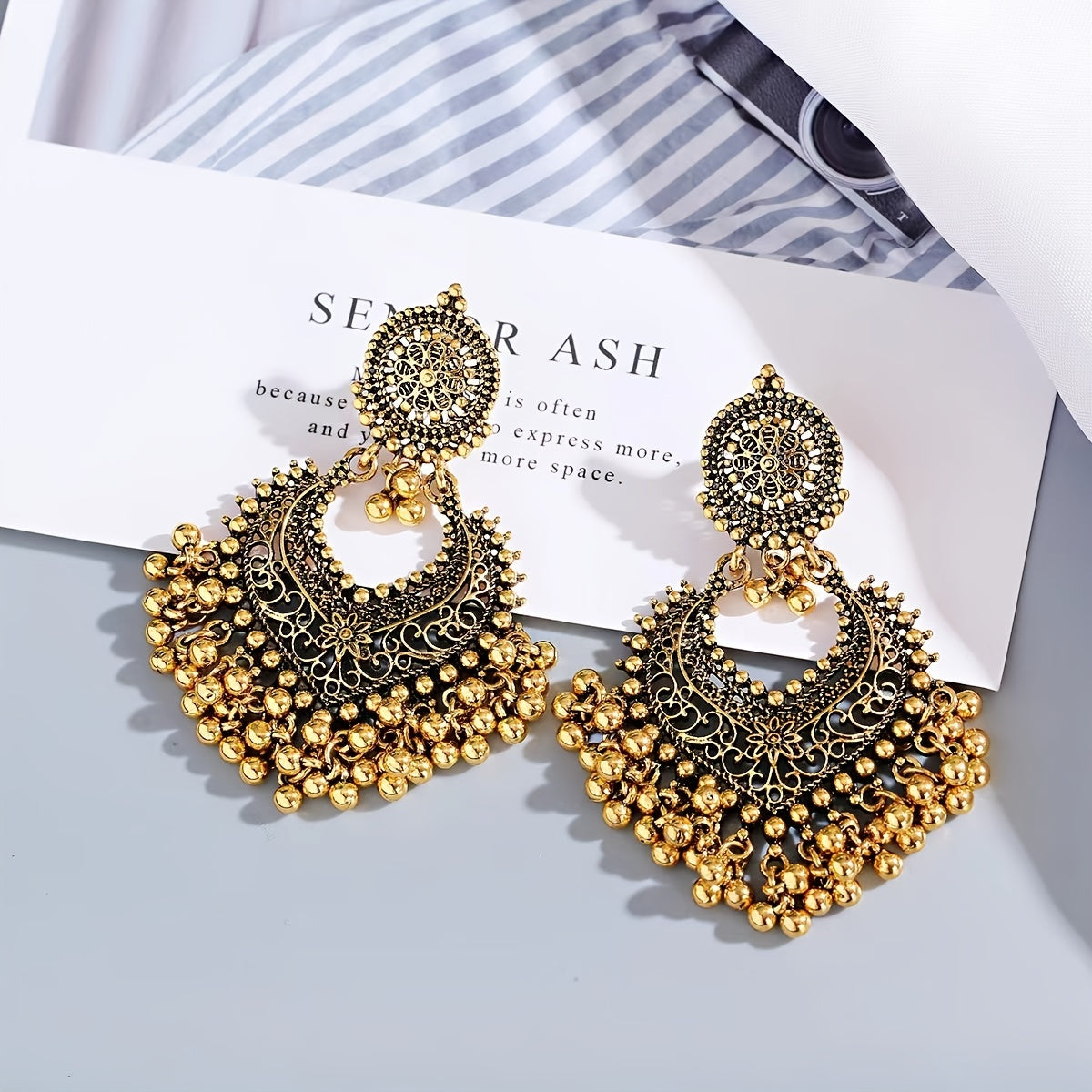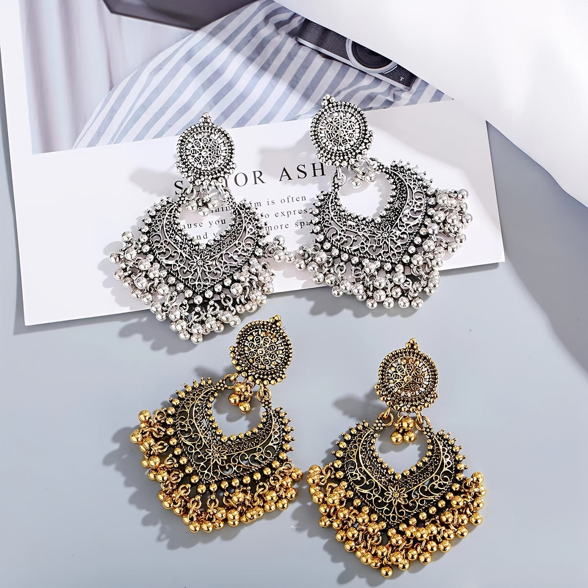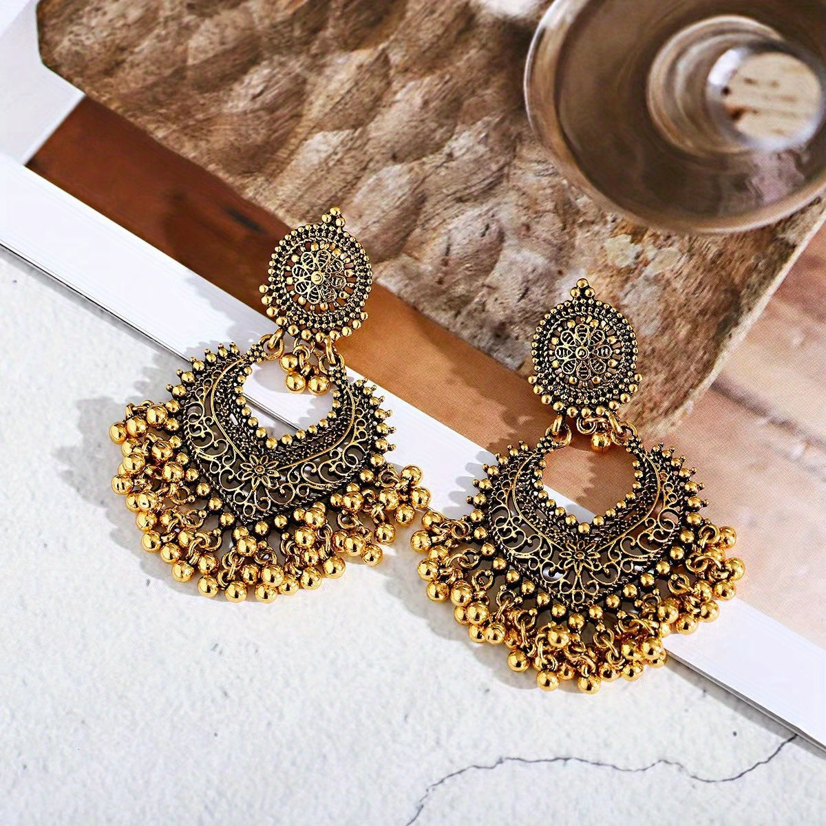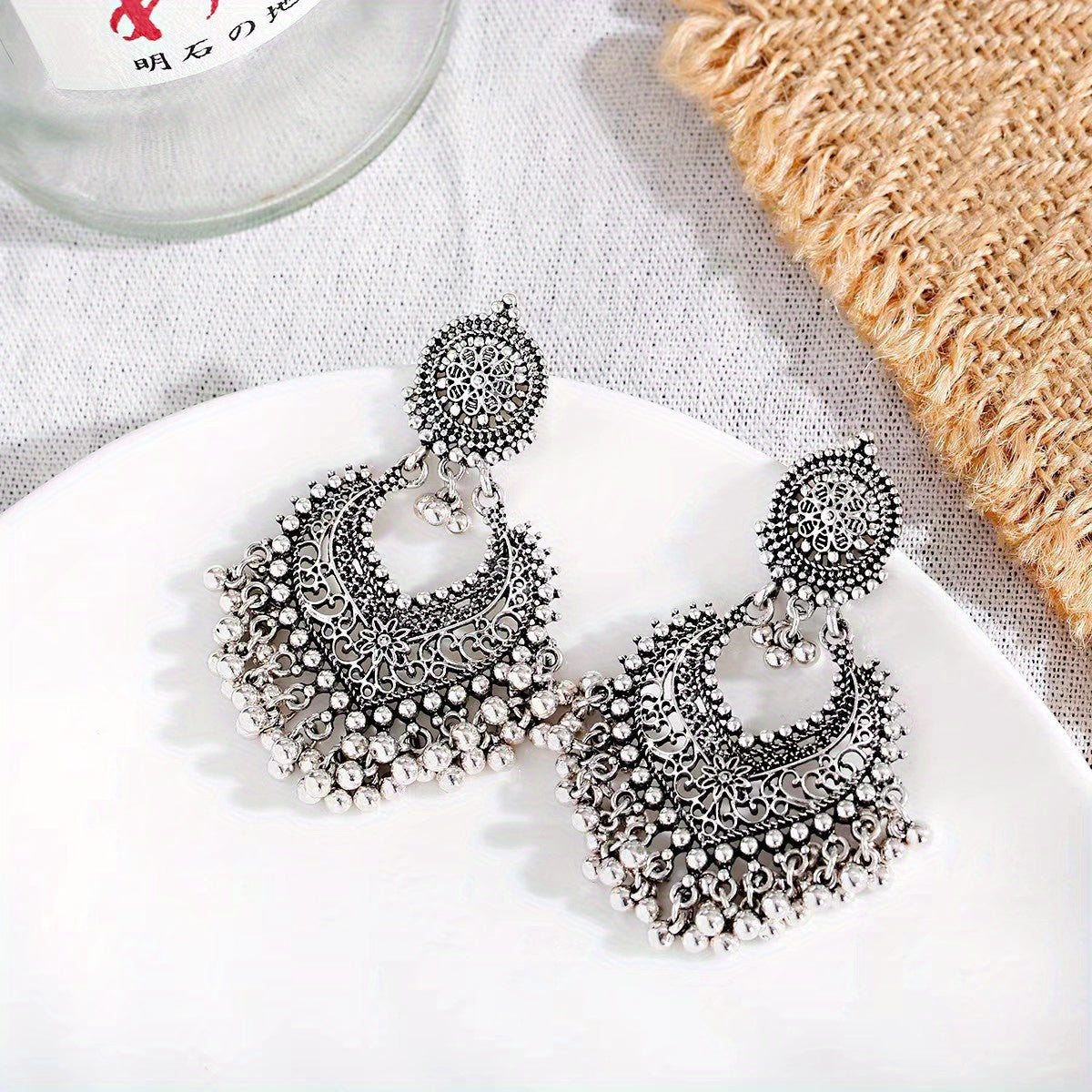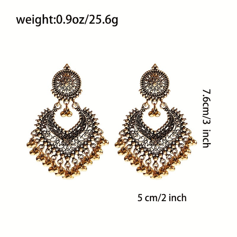 Add a touch of boho chic to your outfit with these unique jhumka earrings. Perfect for parties or everyday wear.