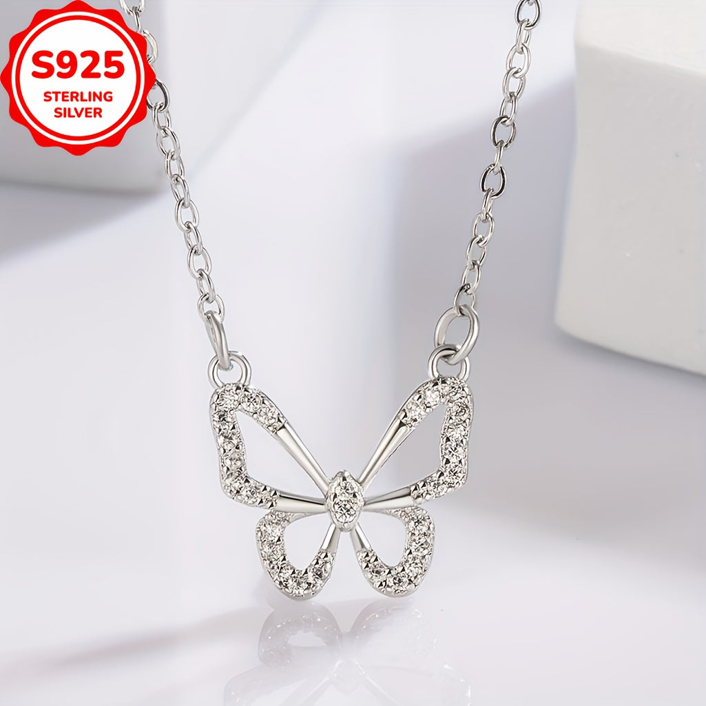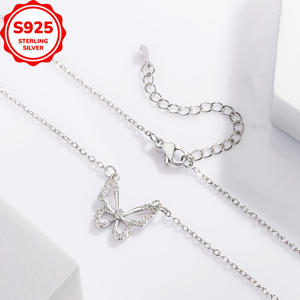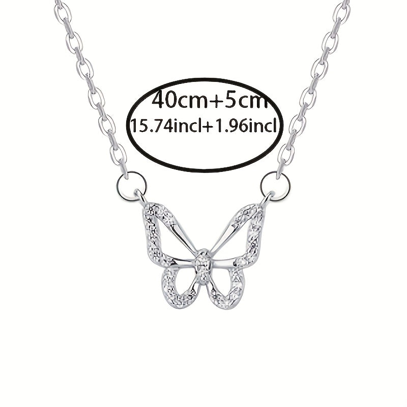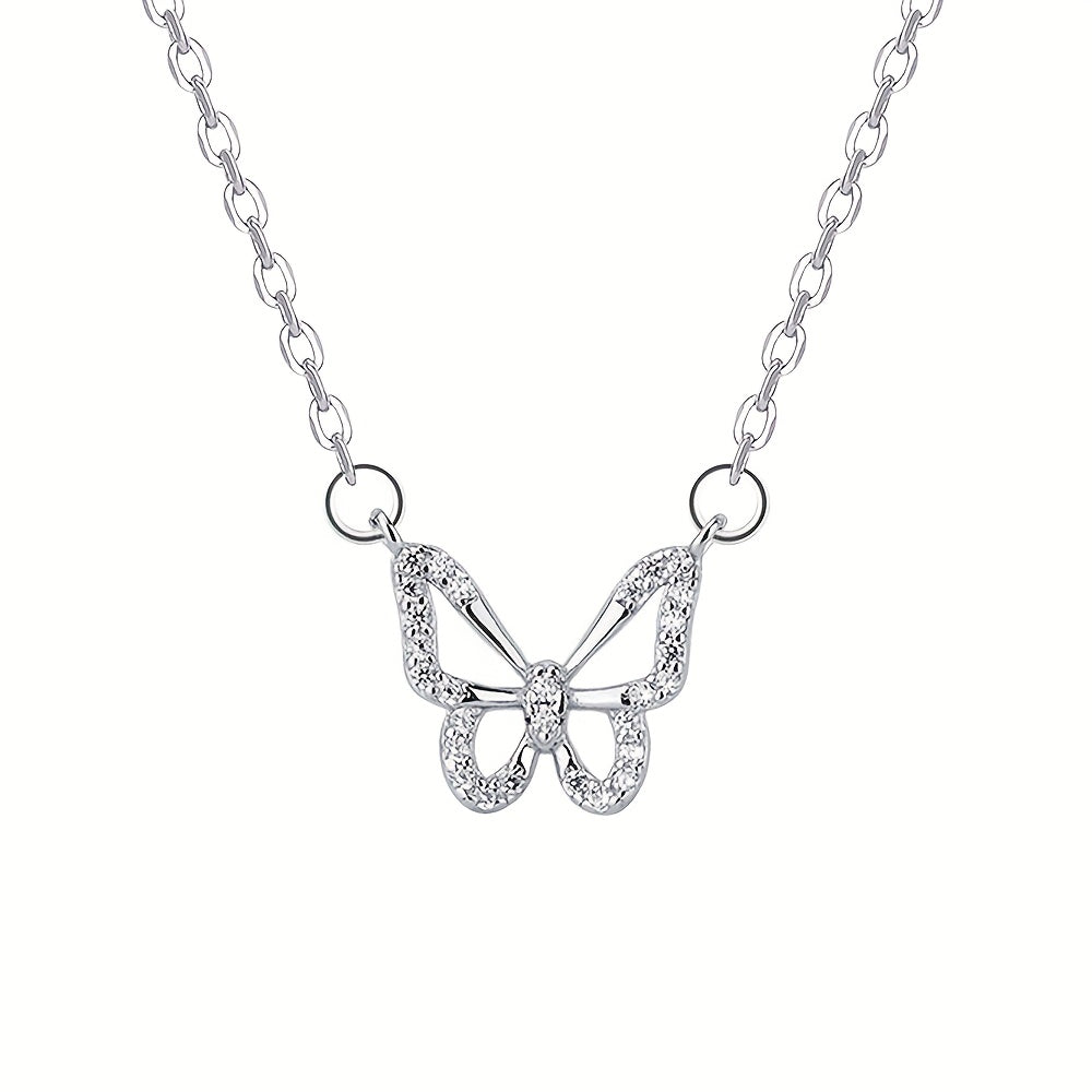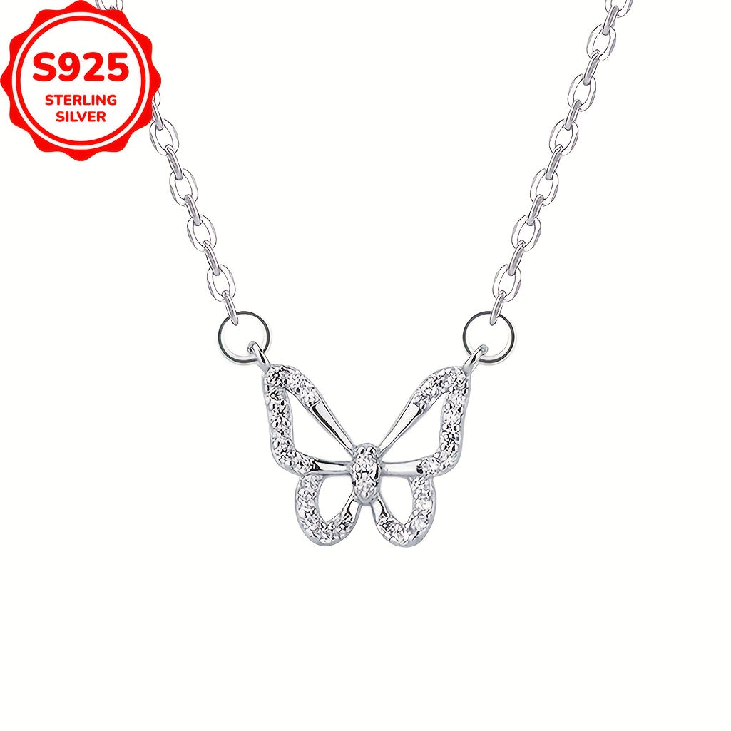 Add a touch of elegance to your outfit with this stunning 925 silver hollow butterfly pendant necklace. It features synthetic zirconia stones for a touch of sparkle. Perfect for daily wear or as a gift for any occasion throughout the year.