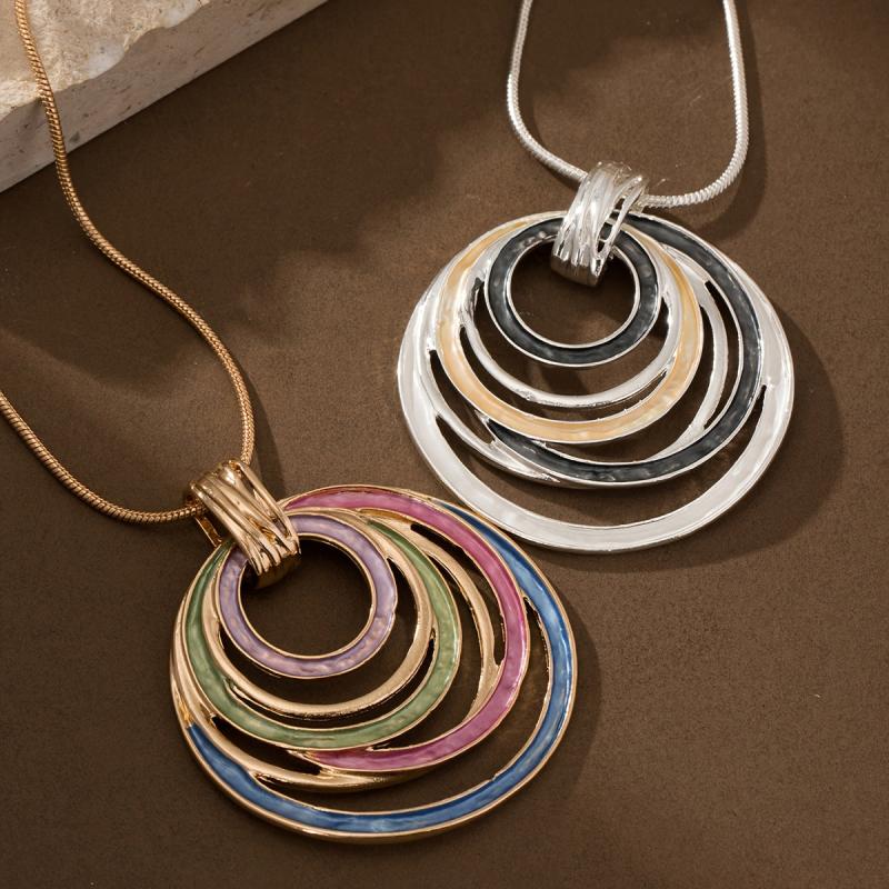 This vintage bohemian style necklace features an adjustable geometric circular hollow pendant, perfect for daily wear. A chic addition to any outfit.