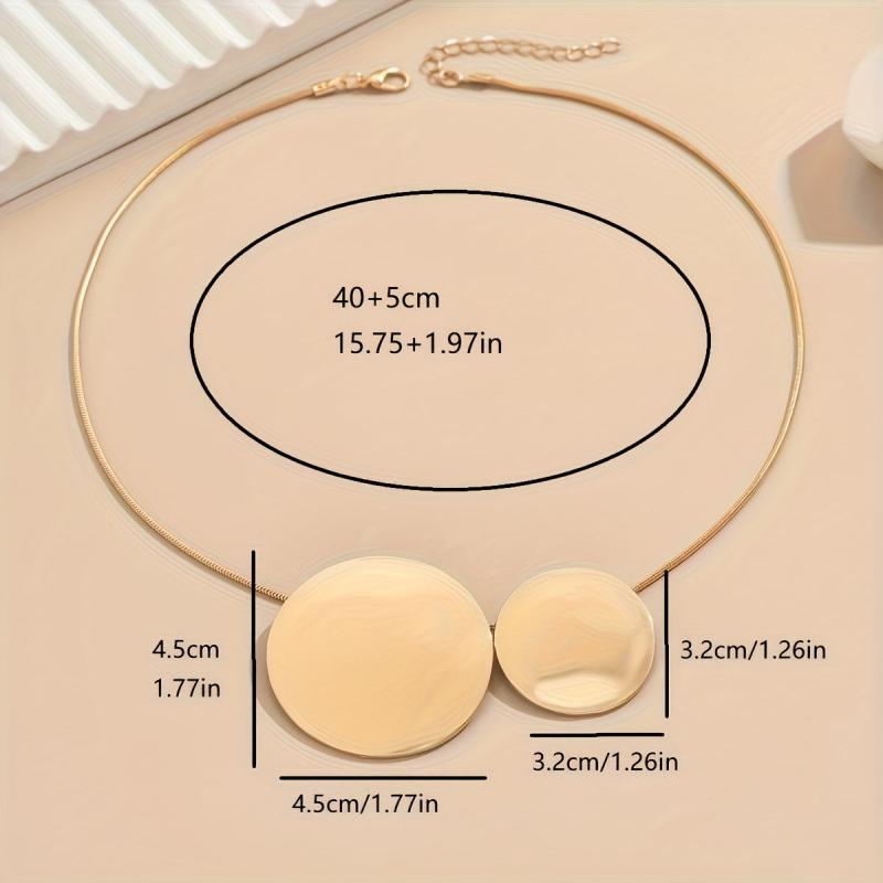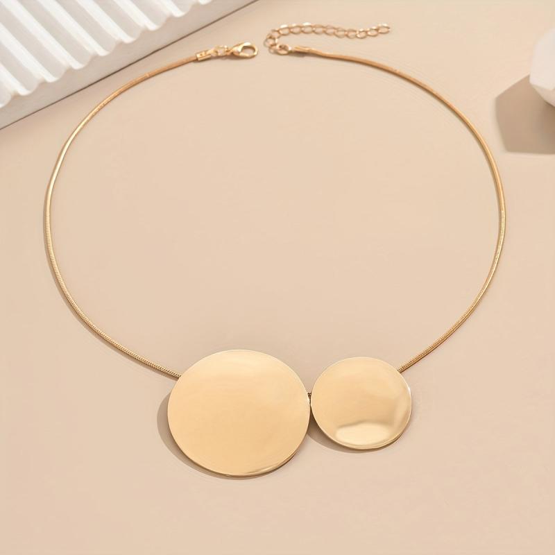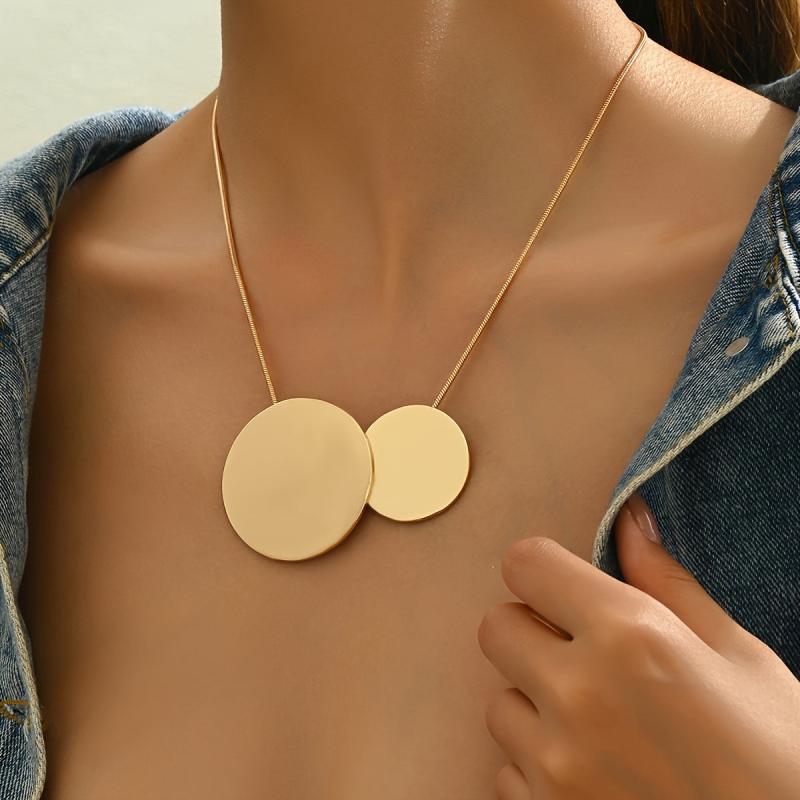 Elegant round pendant necklace made of zinc alloy, featuring a brushed finish and double disc charm. Perfect for daily wear or parties, suitable for all seasons.