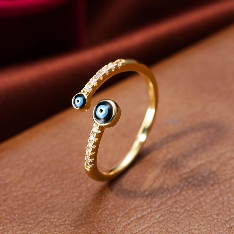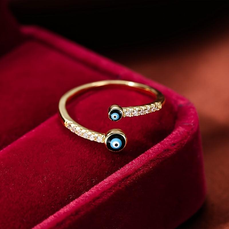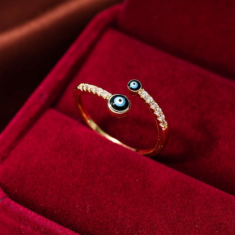 This stunning vintage ring features a devil's eye design with copper, zircon, and enamel details. A charming and unique piece of jewelry perfect as a gift for women, wife, girls, or her birthday.