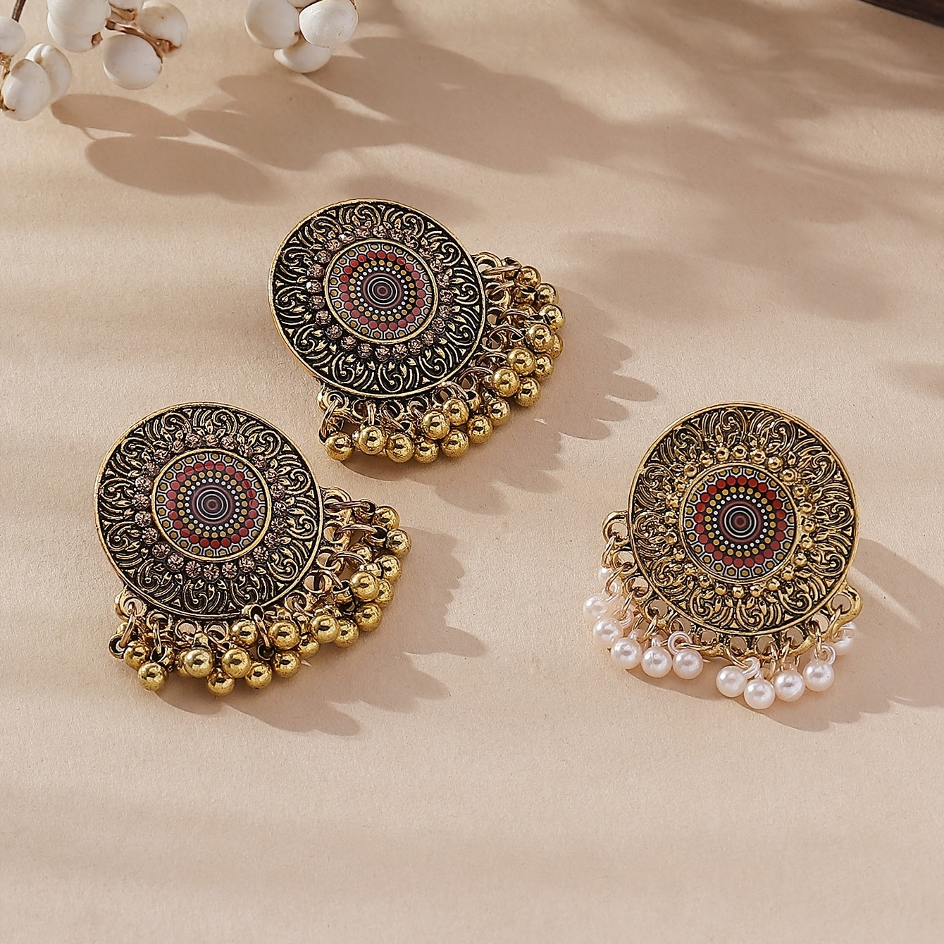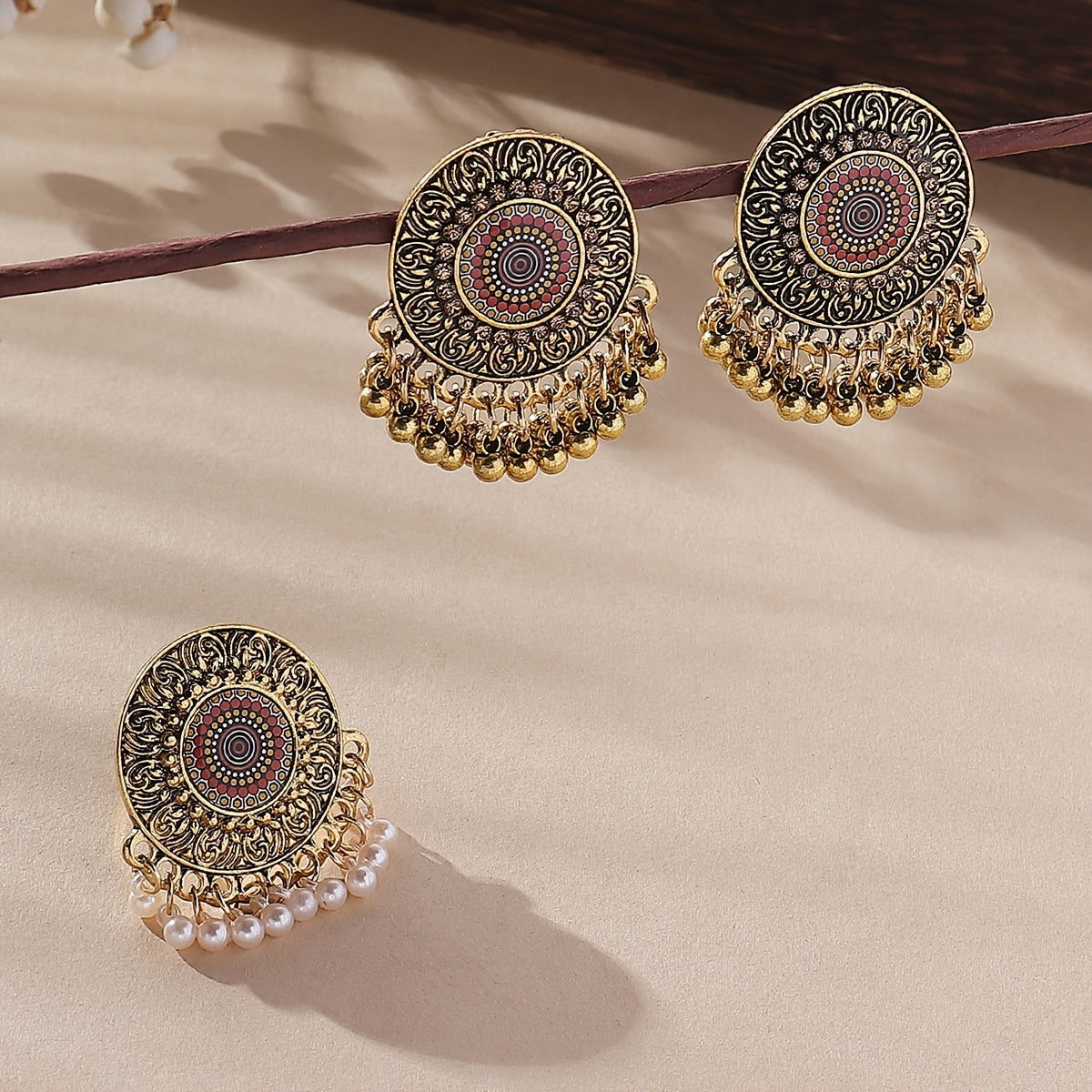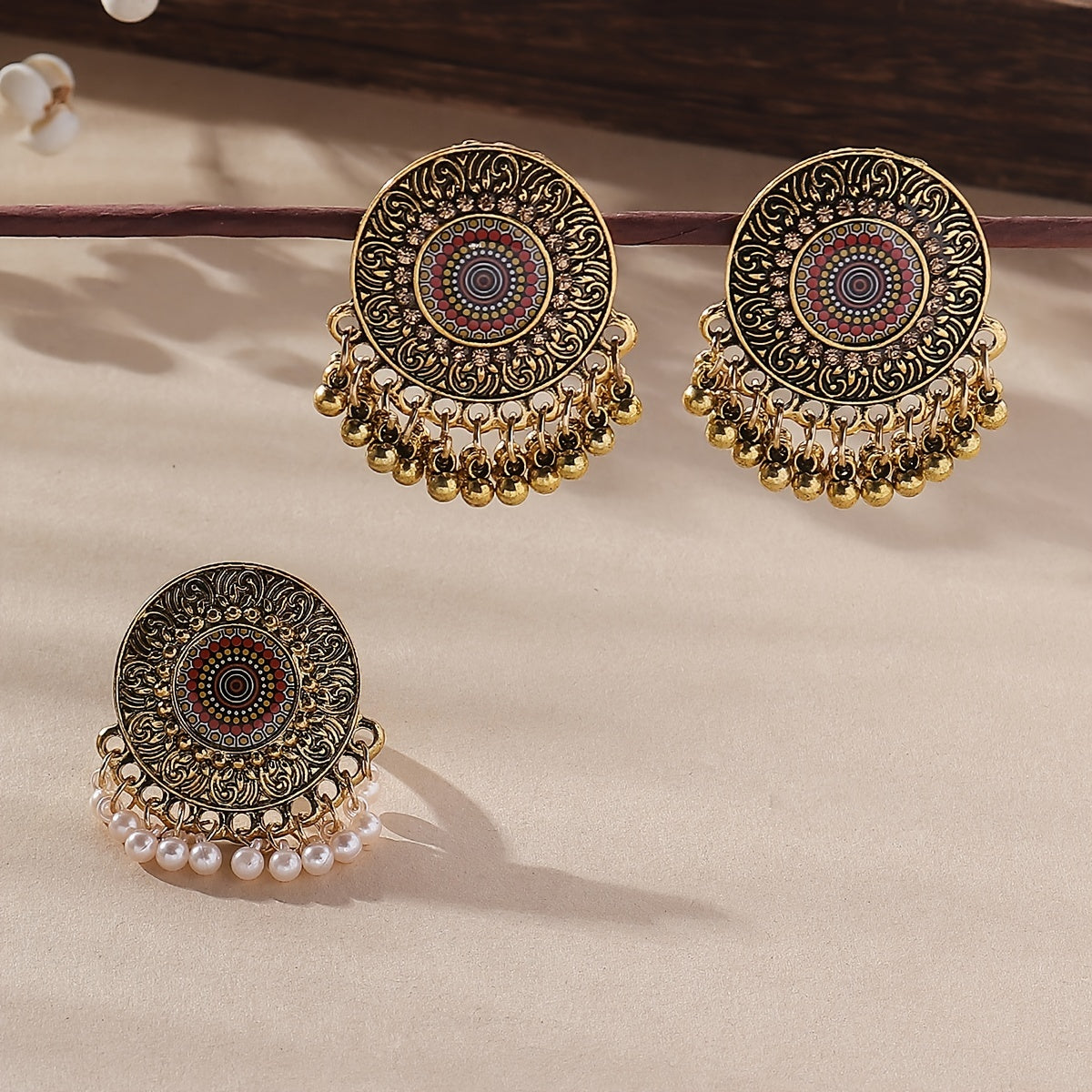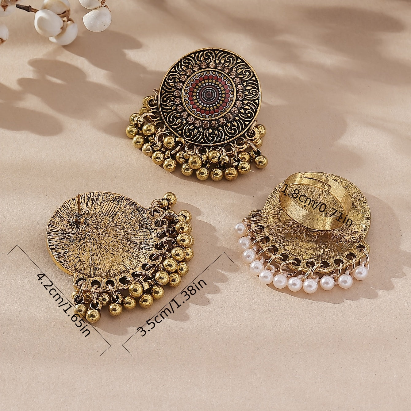 Vintage Court Style Jewelry Set with Large Round Drop Earrings & Ring