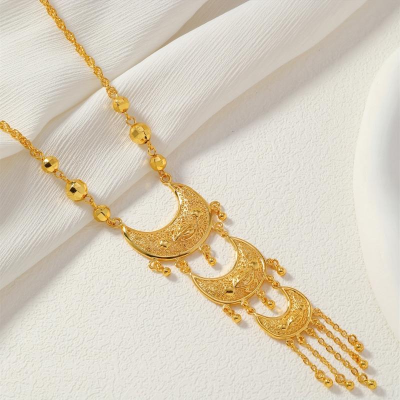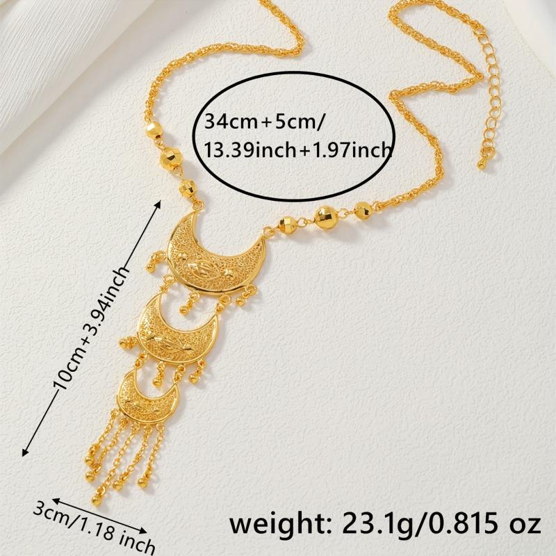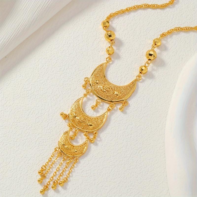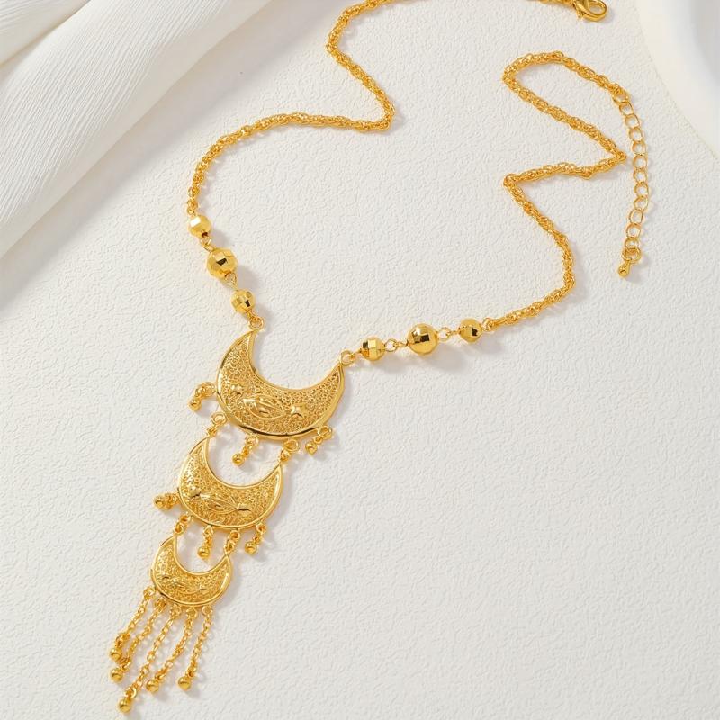 Vintage Crescent Tassel Pendant Necklace 24K Gold Plated Women's Jewelry