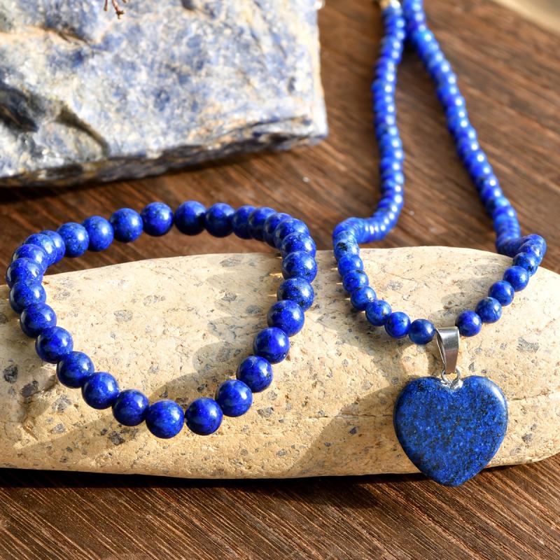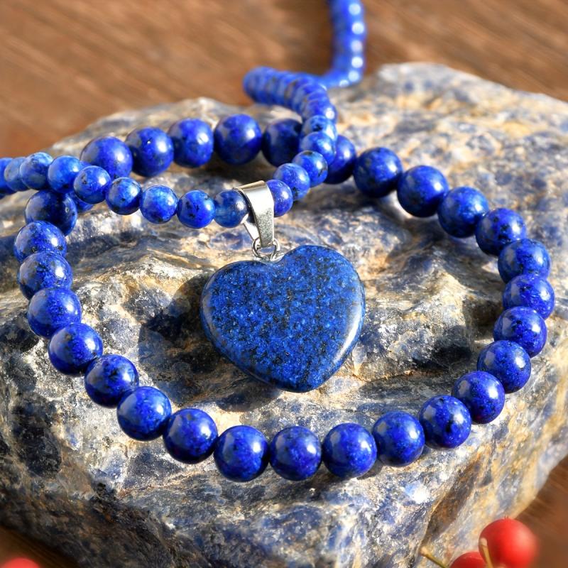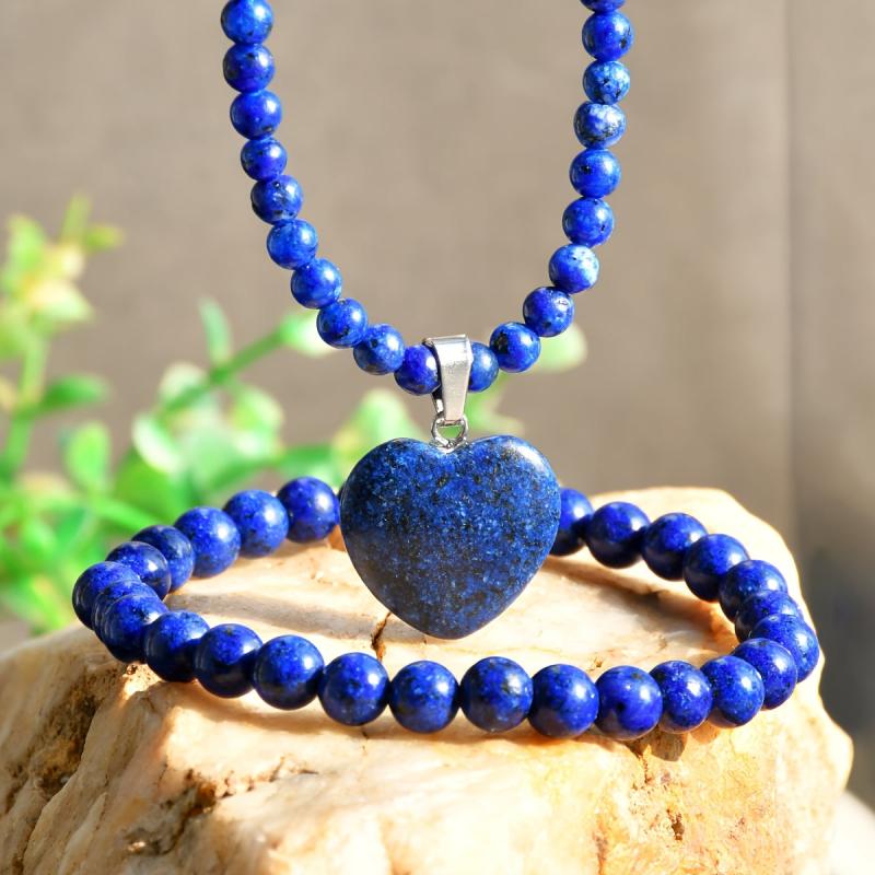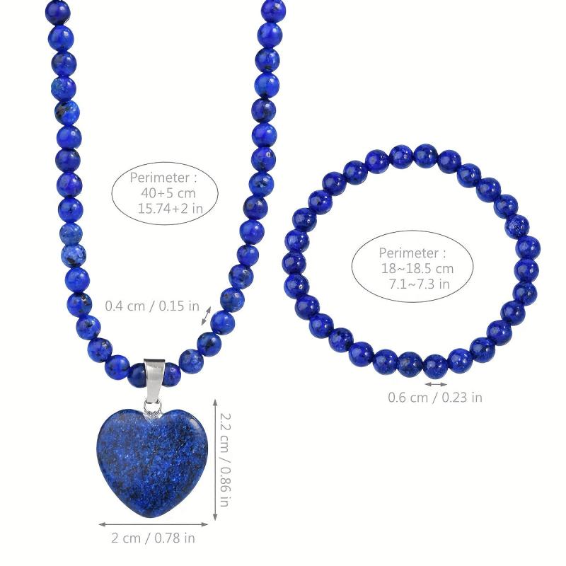 Bohemian style jewelry set featuring natural stone necklace and bracelet with heart shaped pendant. Perfect for everyday wear, parties, holidays, and gifting.