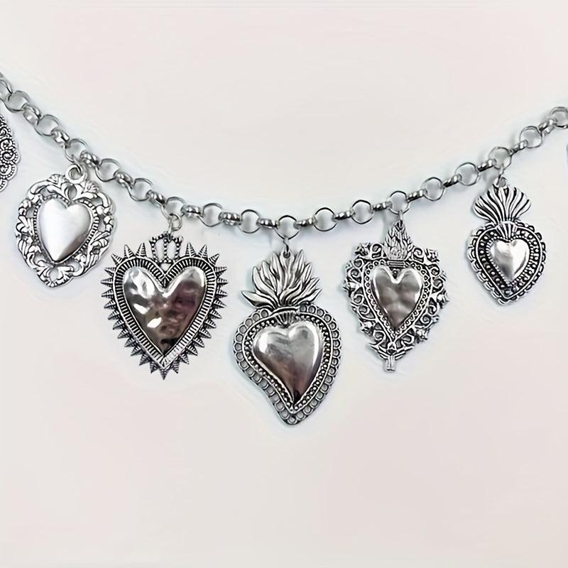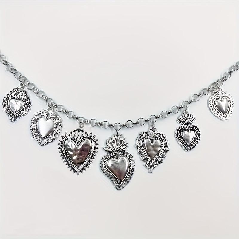 This vintage gothic heart flame pendant necklace is made of zinc alloy with no mosaic design, making it a versatile daily wear accessory ideal for gift giving.