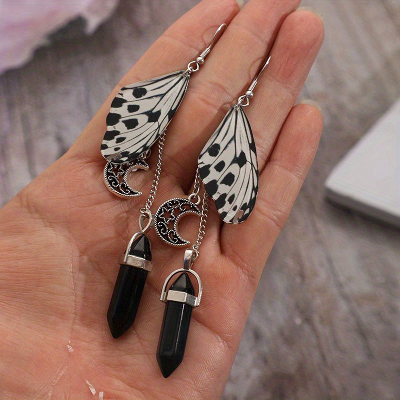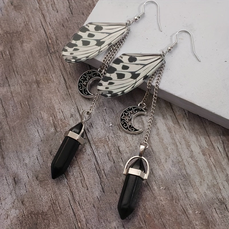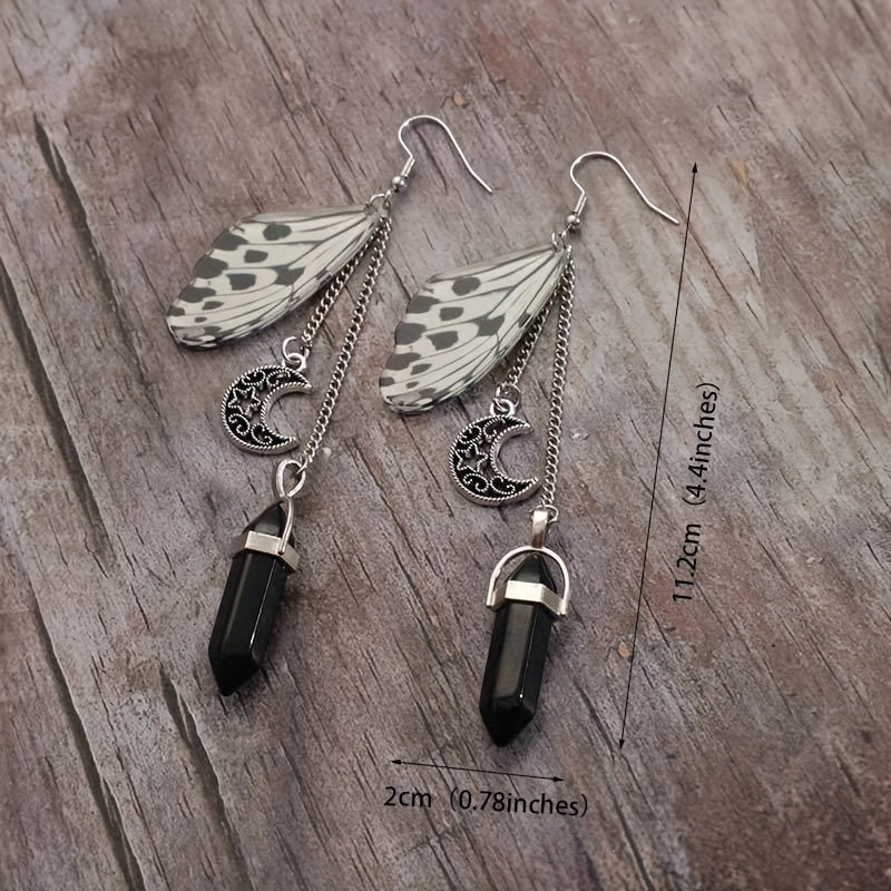 Vintage Gothic Star Moon Butterfly Wings Long Chain Earrings