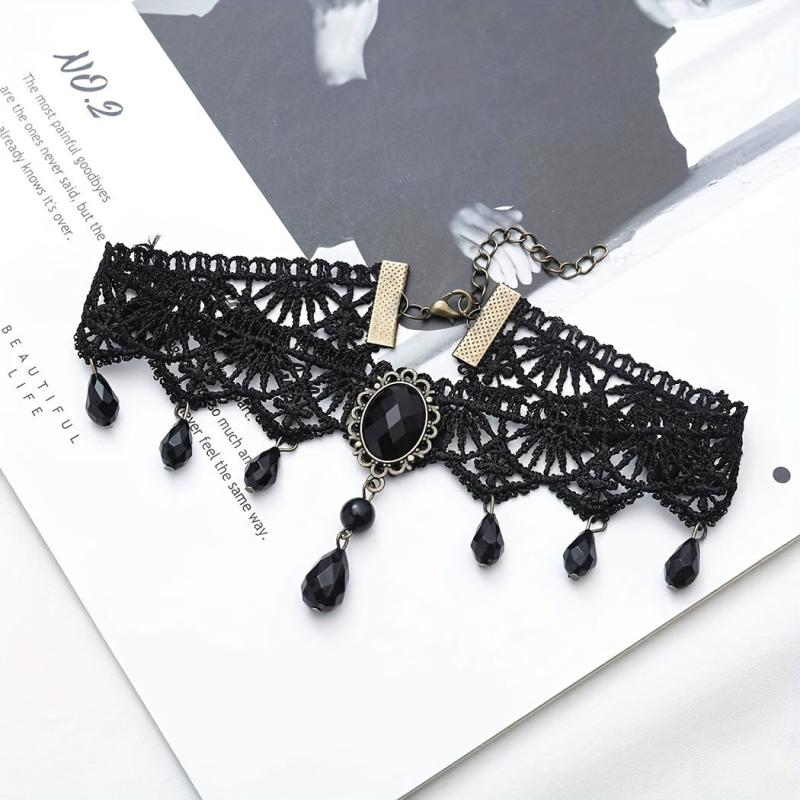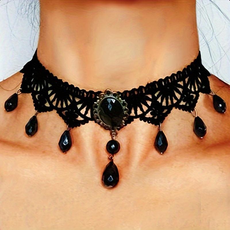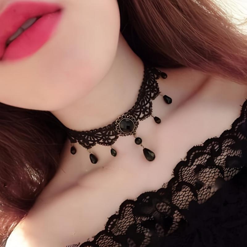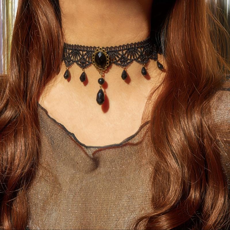 Elevate your Halloween costume or everyday outfit with this Gothic vintage lace choker featuring a teardrop pendant. Perfect for parties and adding a touch of elegance to your look.
