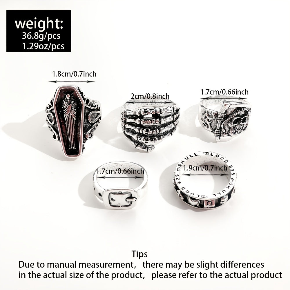 Vintage Punk Skull Skinny Buckle Ring 5pcs Set Women's Jewelry
