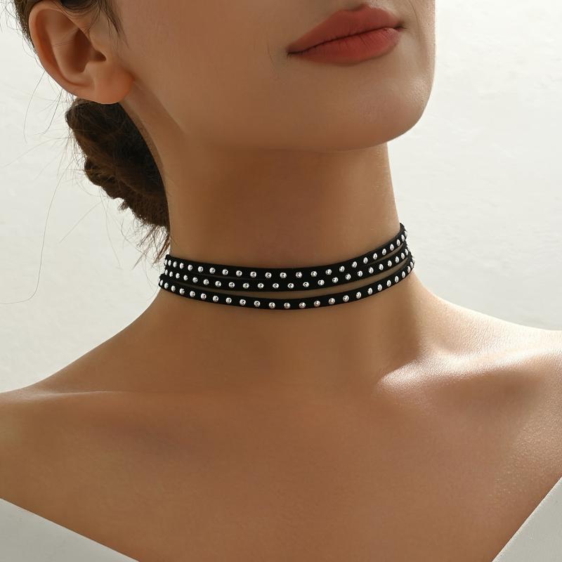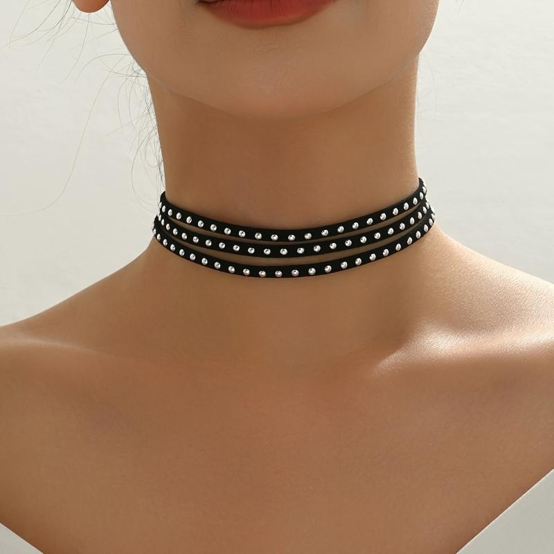 Enhance your edgy look with this vintage punk style choker necklace featuring velvet studs. Perfect accessory for women who love to rock the punk fashion trend.