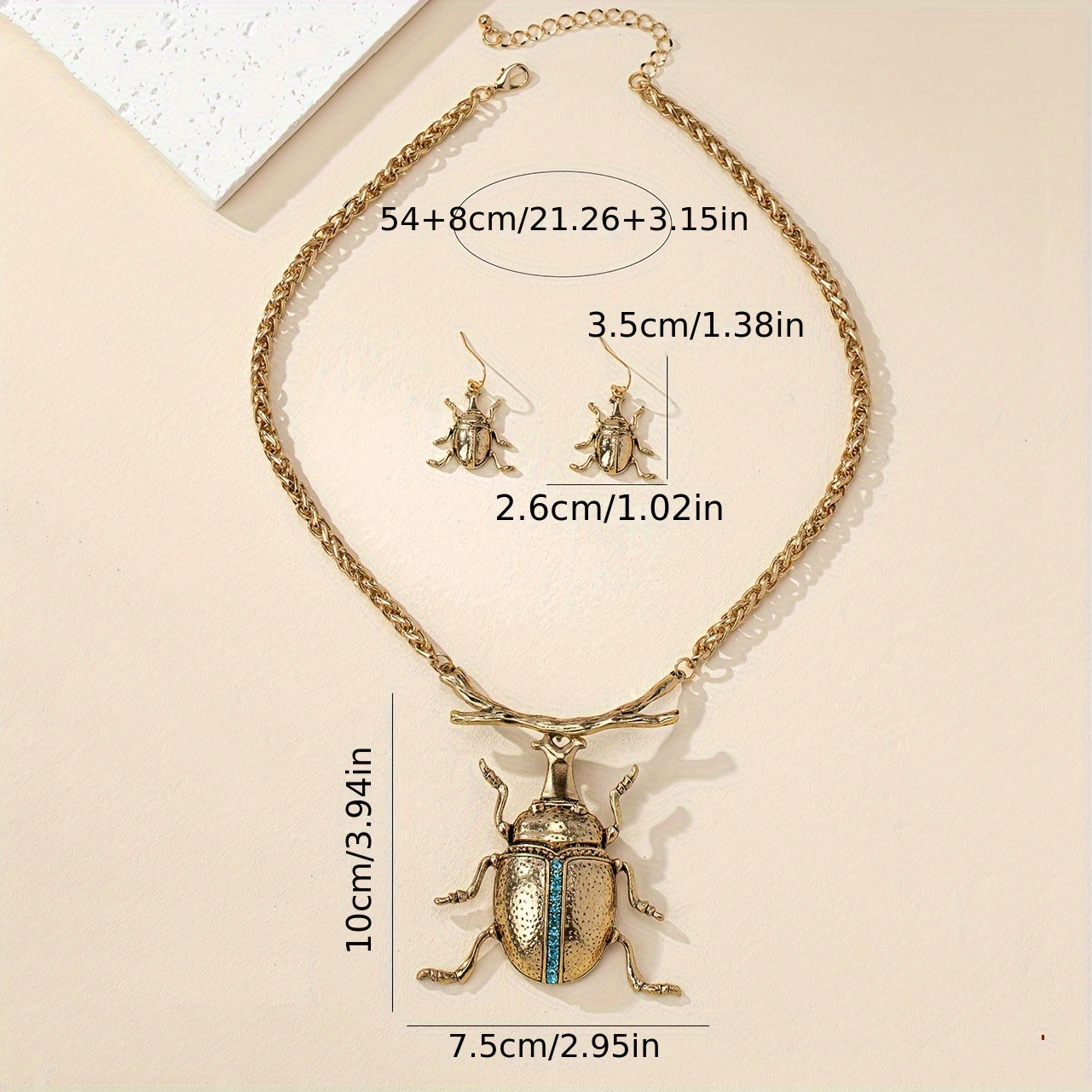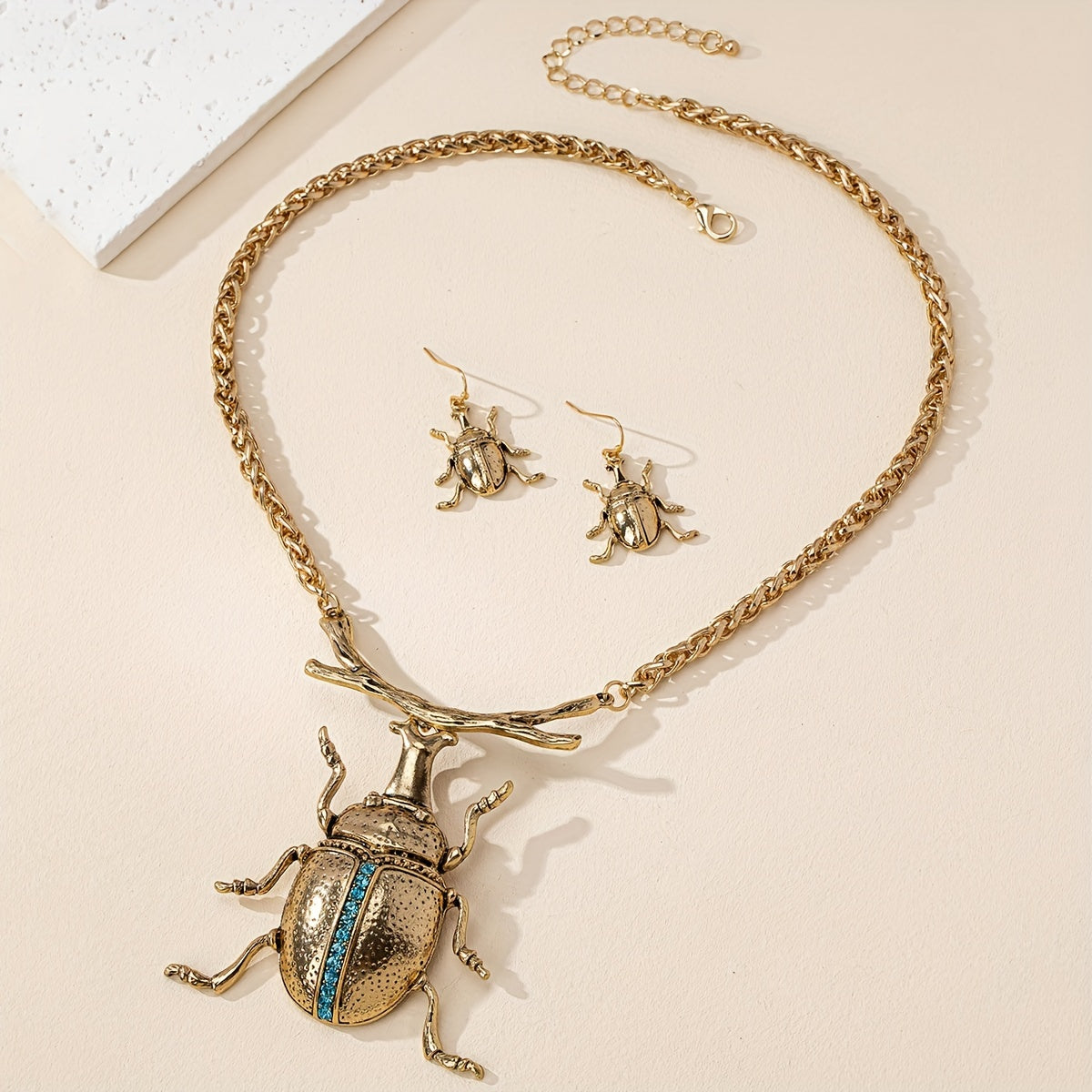 Elegant beetle jewelry set with rhinestones, perfect for parties, banquets, and daily wear. Crafted from zinc alloy with 18K golden plating.