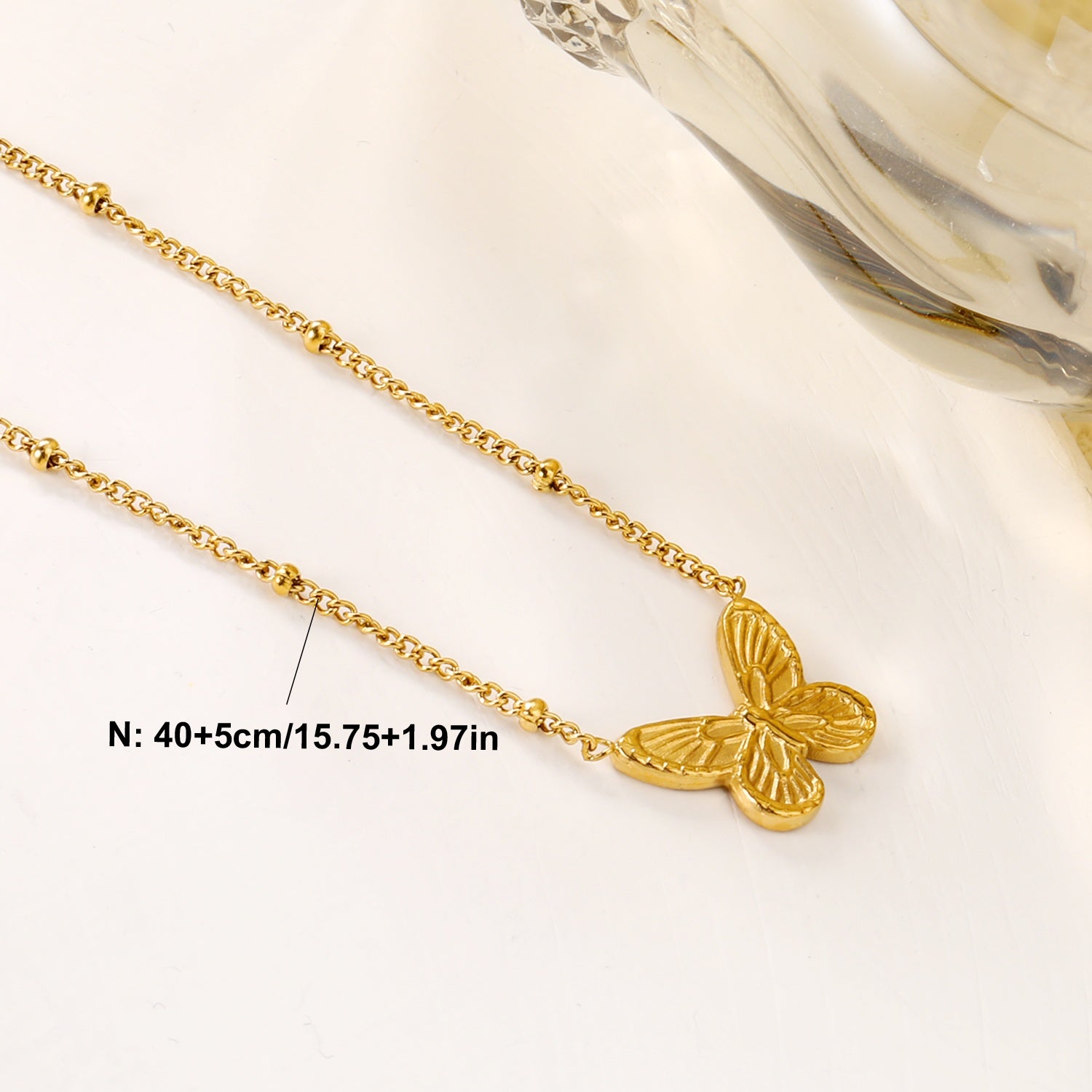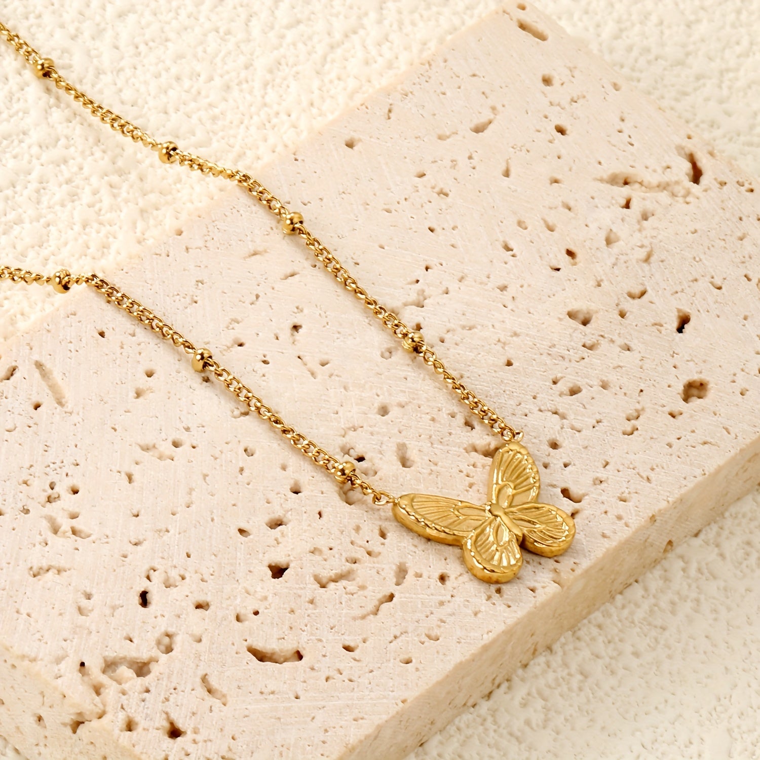 This stainless steel butterfly pendant necklace features a beaded chain for a vintage-inspired look. It's perfect for daily wear or gifting, suitable for both men and women.