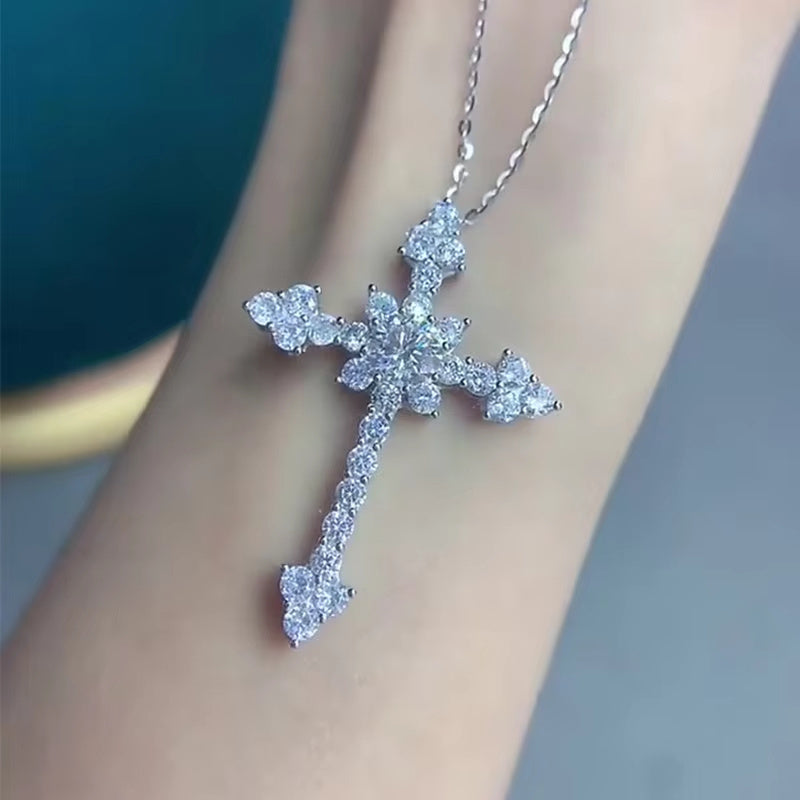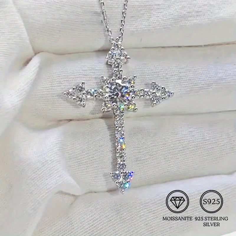 Vintage Style 1ct Moissanite Cross Pendant Necklace