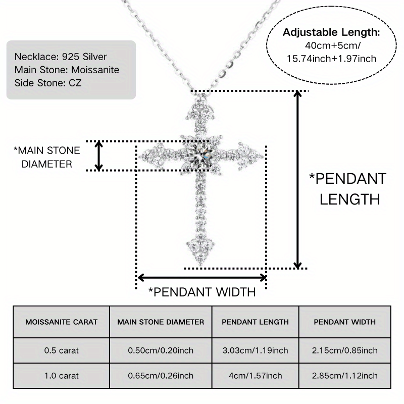 • 925 sterling silver pendant necklace with 1 carat Moissanite stone