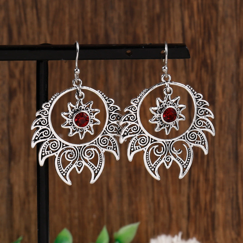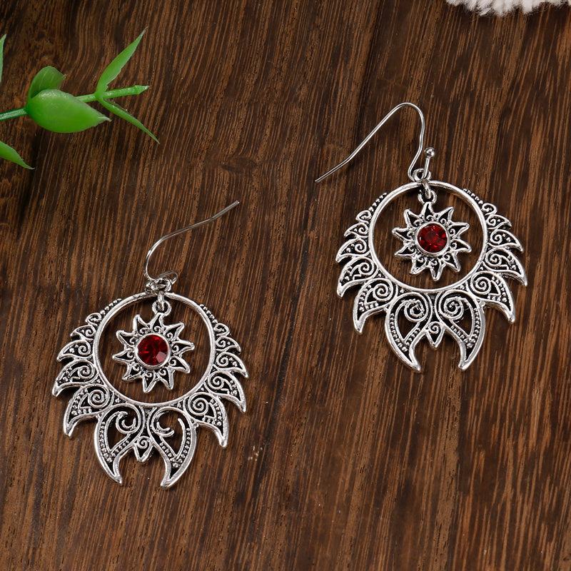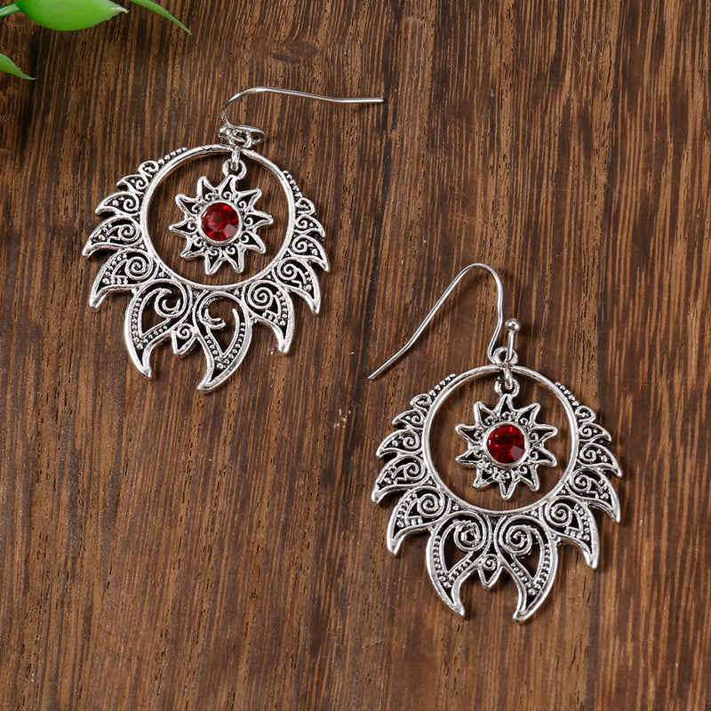 These vintage style drop earrings are inlaid with synthetic gems and feature a boho design. They make a sweet and stylish jewelry gift.