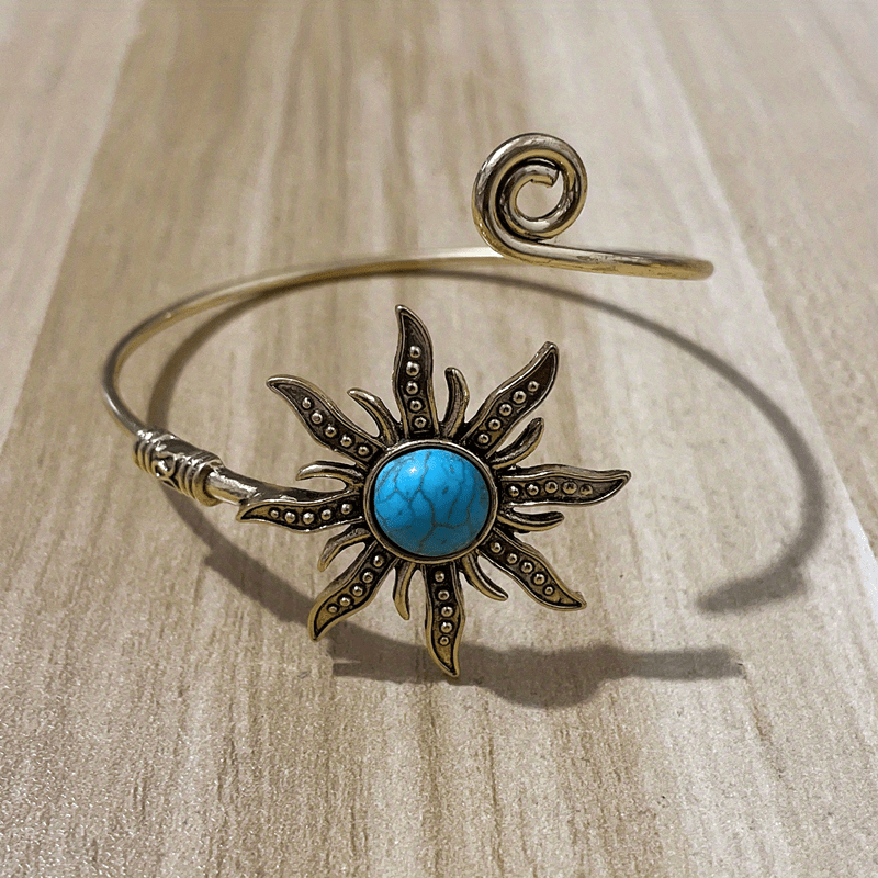 This vintage style open ring features a sunflower shape with inlaid synthetic gems, perfect for adding a boho touch to your look. Ideal for women and girls.