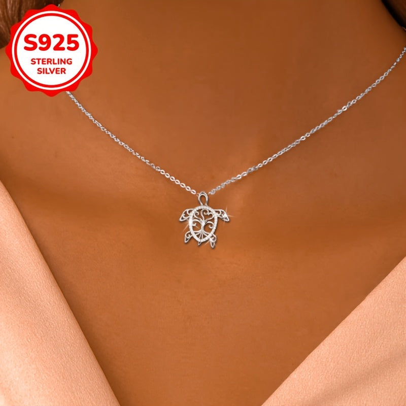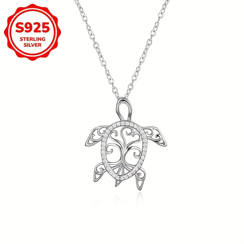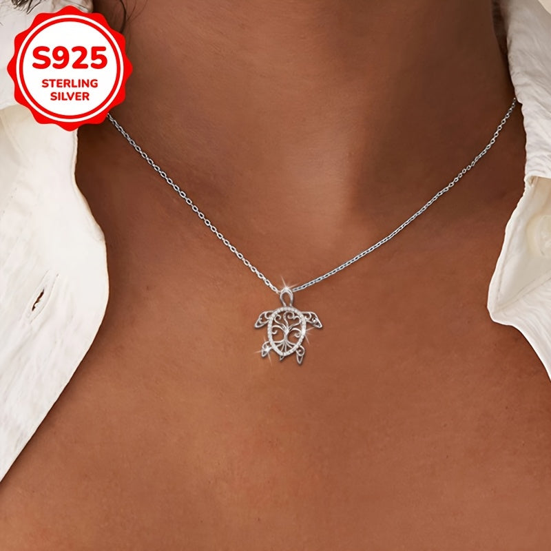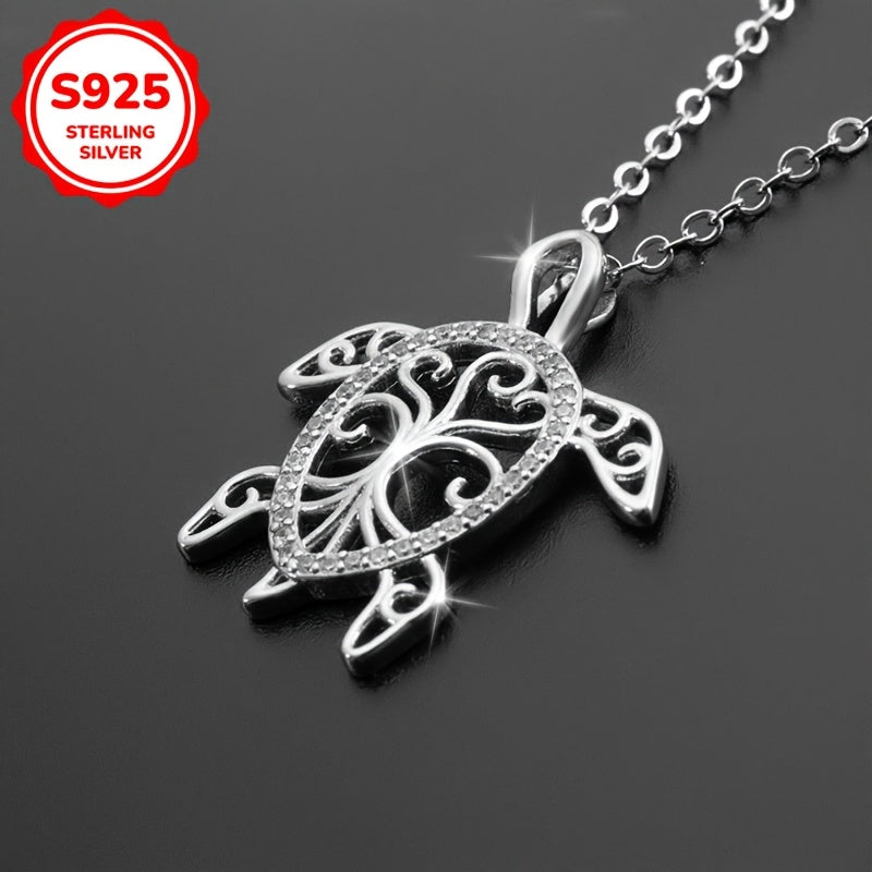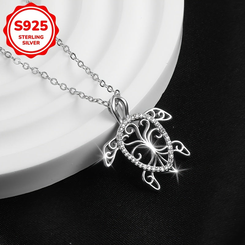 Add a touch of elegance with this vintage turtle pendant necklace. Crafted with synthetic zirconia inlay on a 925 silver chain. Ideal for daily wear, beach outings, or as a vacation gift.