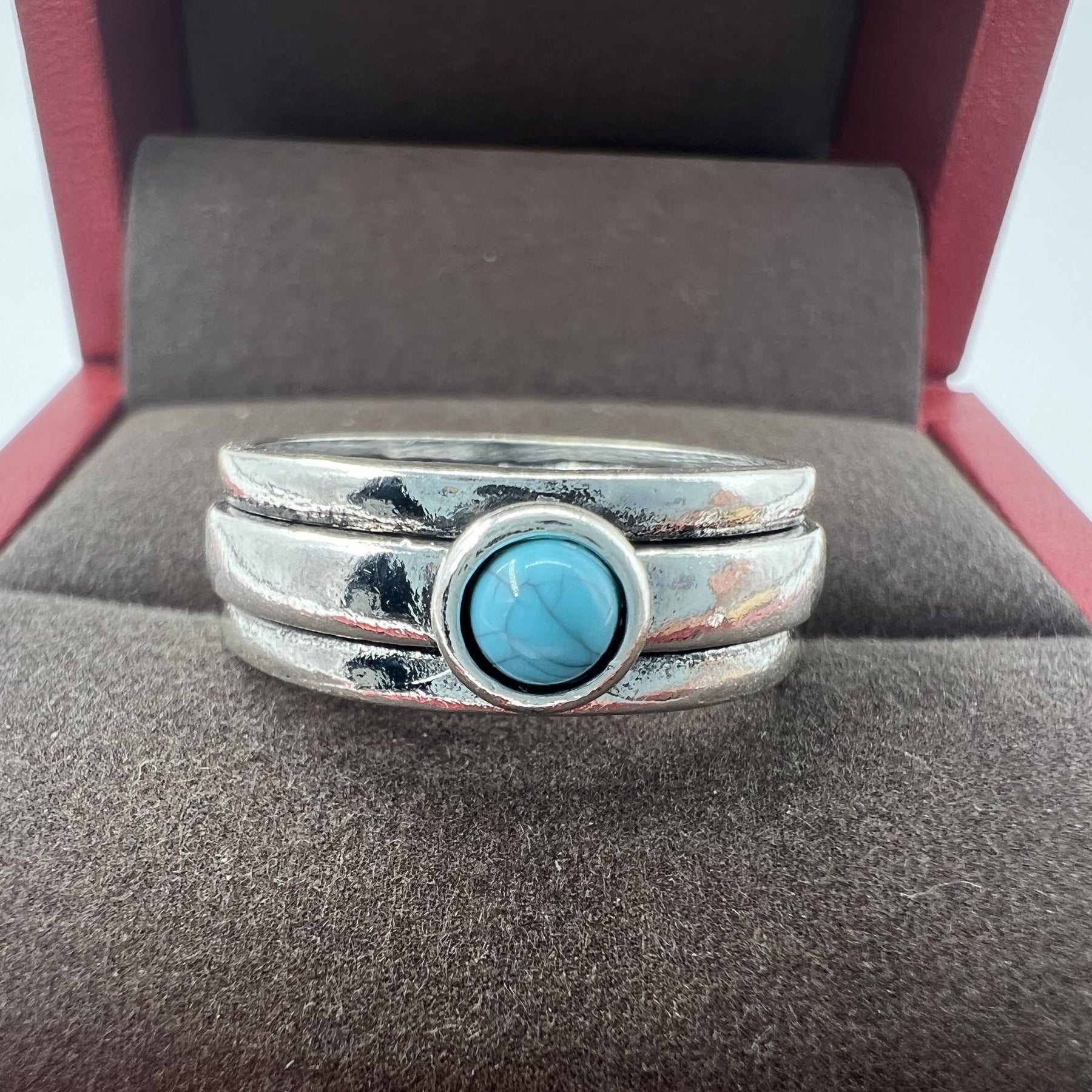 Add a touch of vintage charm to your look with this turquoise finger ring. Perfect for meditation and making a statement.