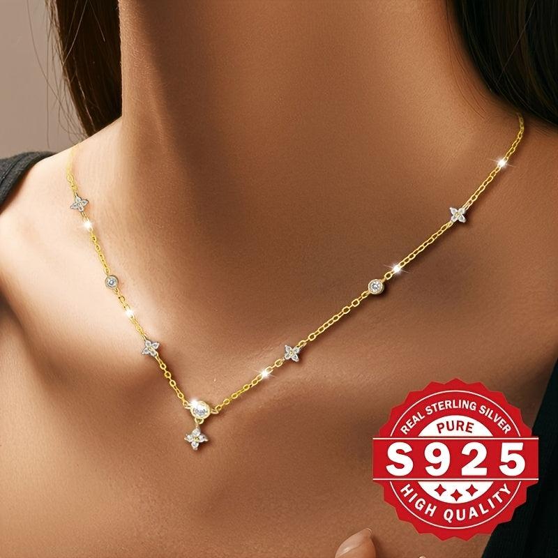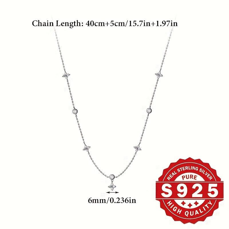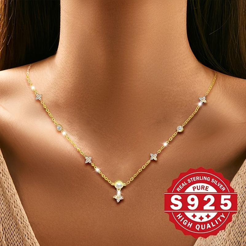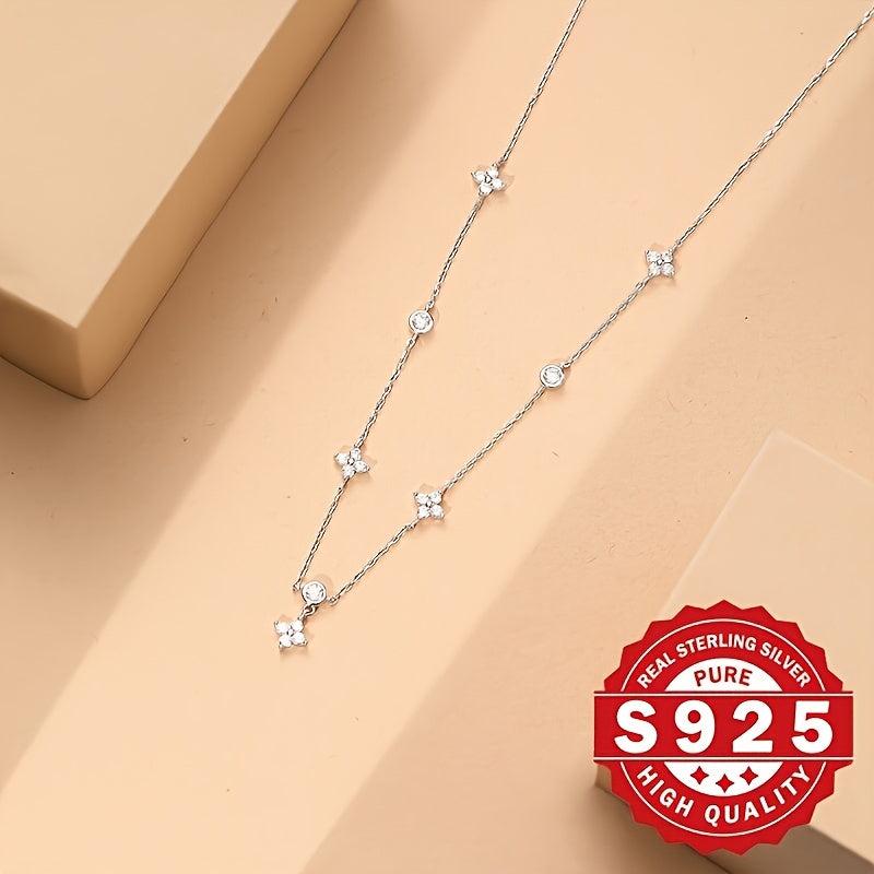 Women's Four Leaf Clover Zirconia Necklace S925 Sterling Silver Tassel Chain