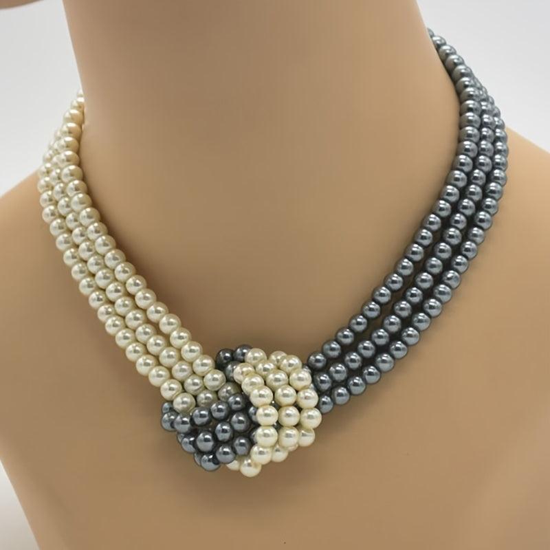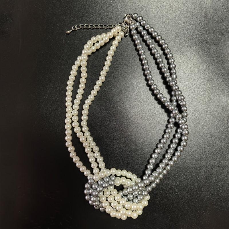 Elevate your look with this versatile necklace featuring minimalist glass beads and gray pearlescent layers. Perfect for everyday wear or special occasions.