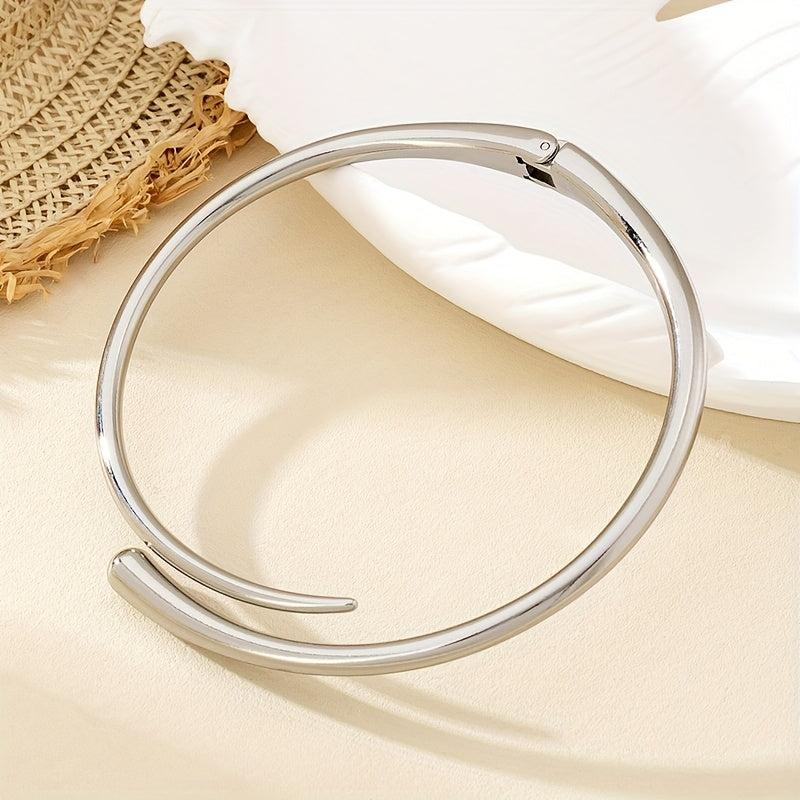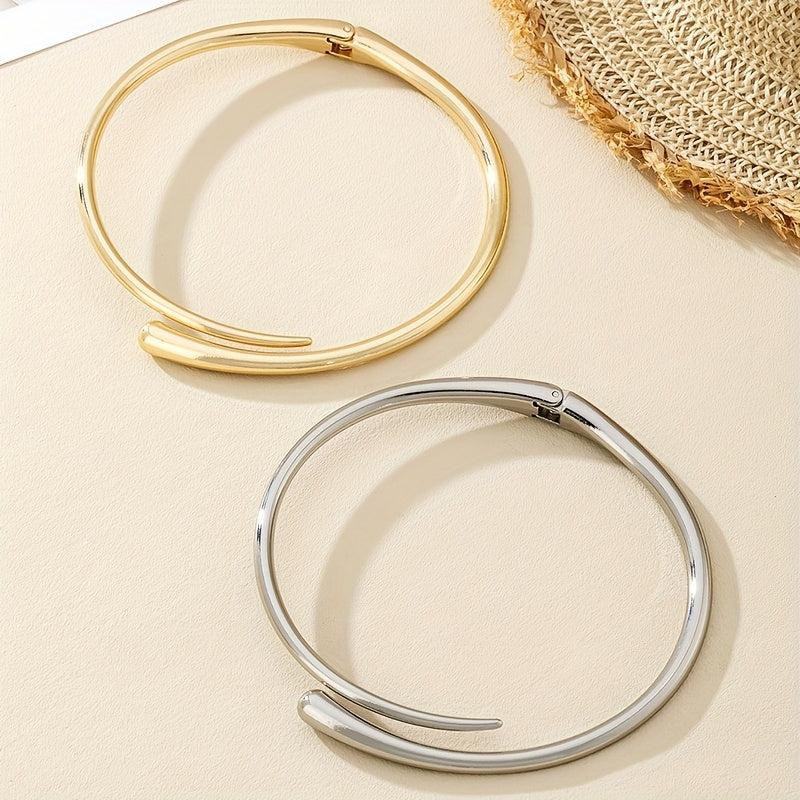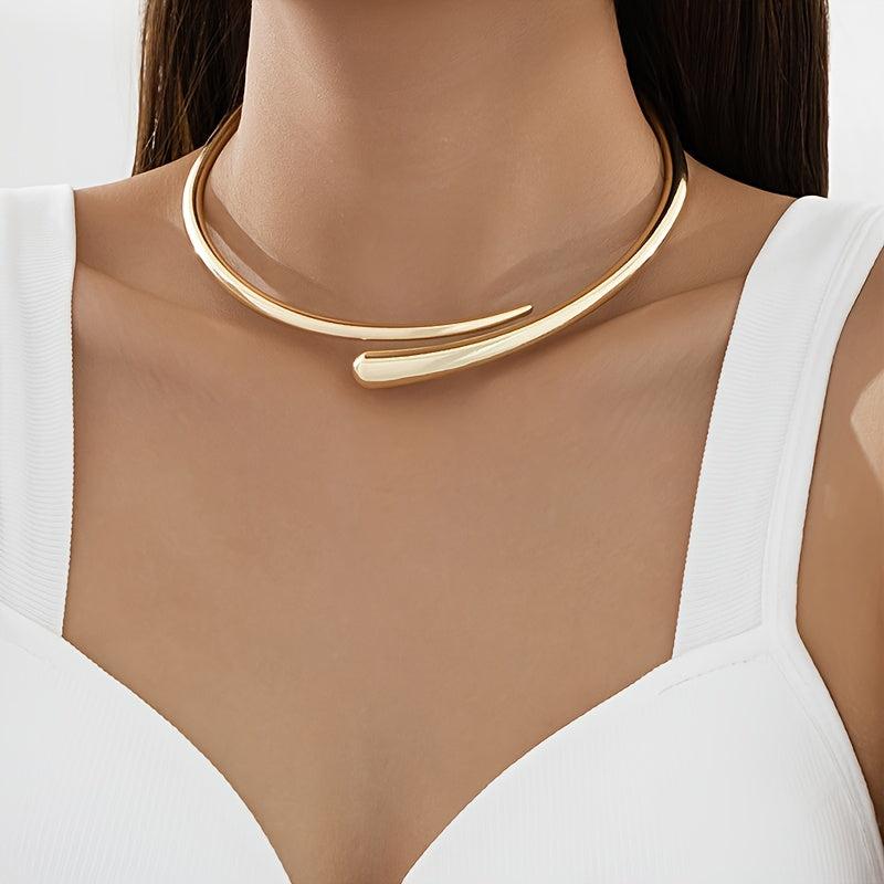 Sleek and stylish, this minimalist open ring choker necklace features a golden tone and a spring design that allows for easy adjustment. Perfect for parties, music festivals, and year-round wear as a chic accessory.