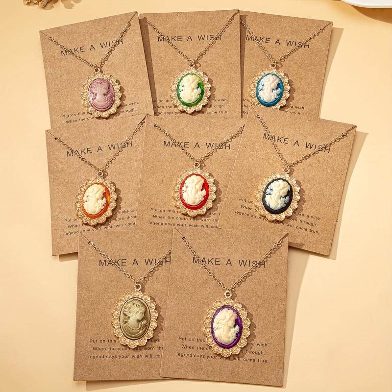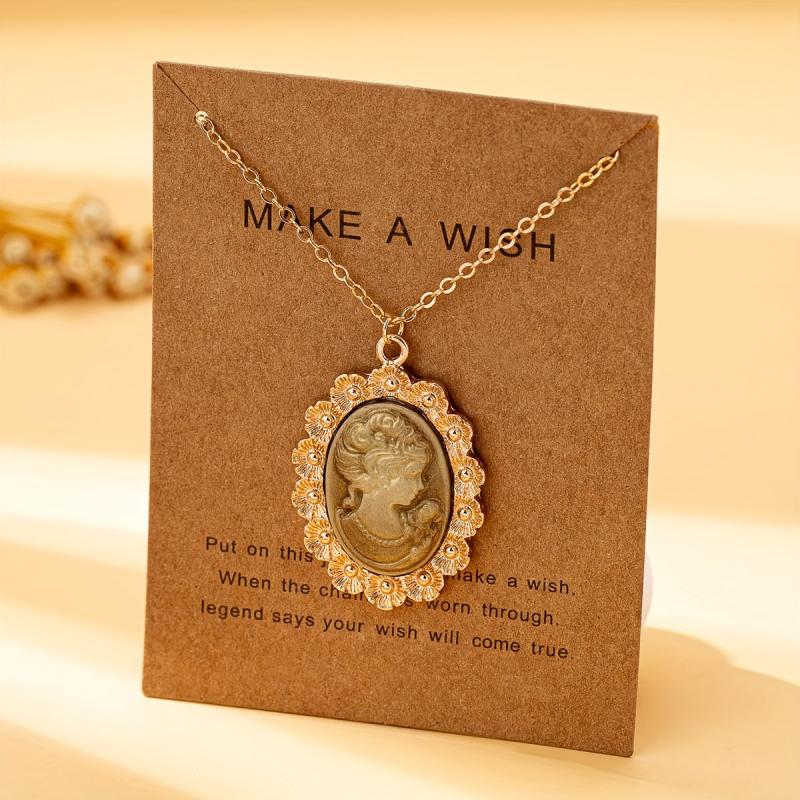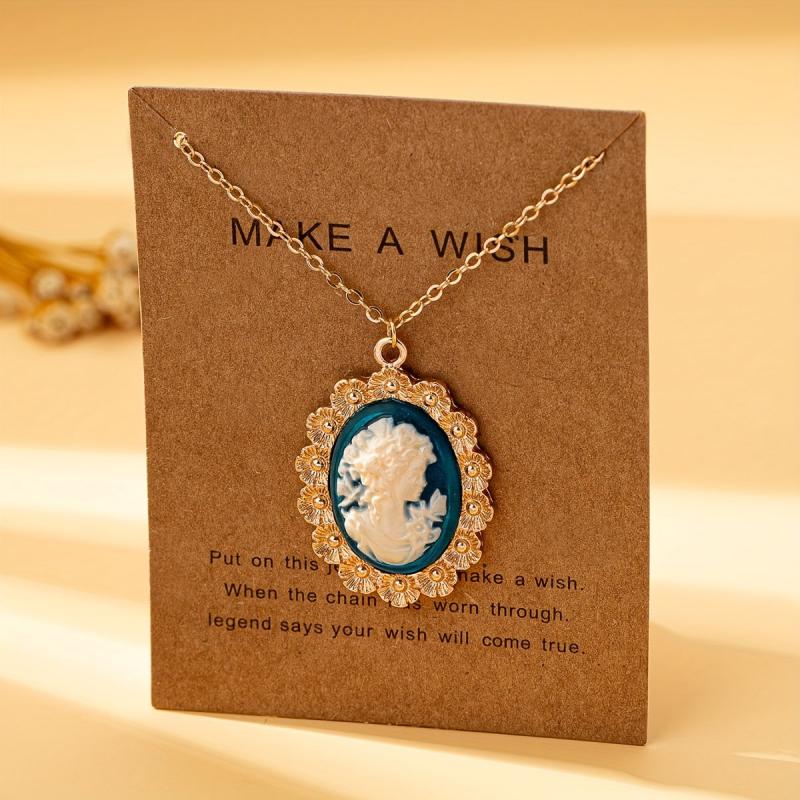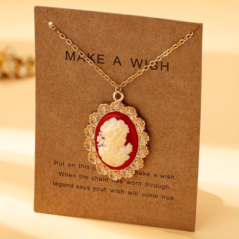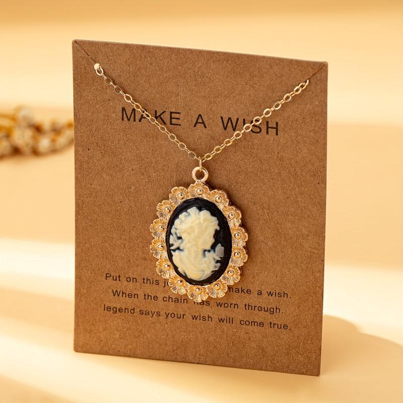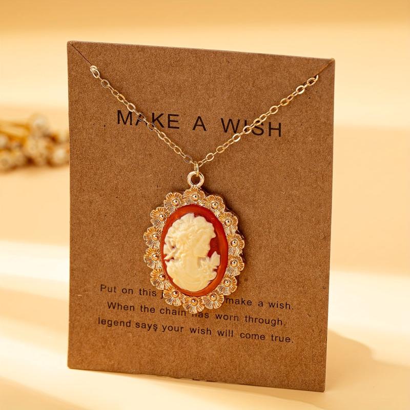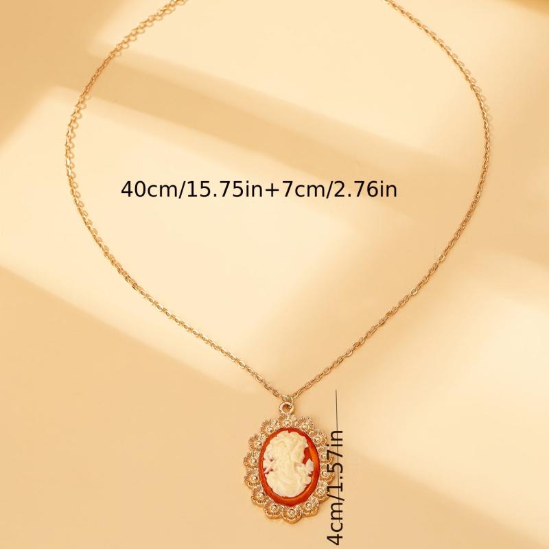 Women's Head Pendant Necklace with Resin Bead Accents