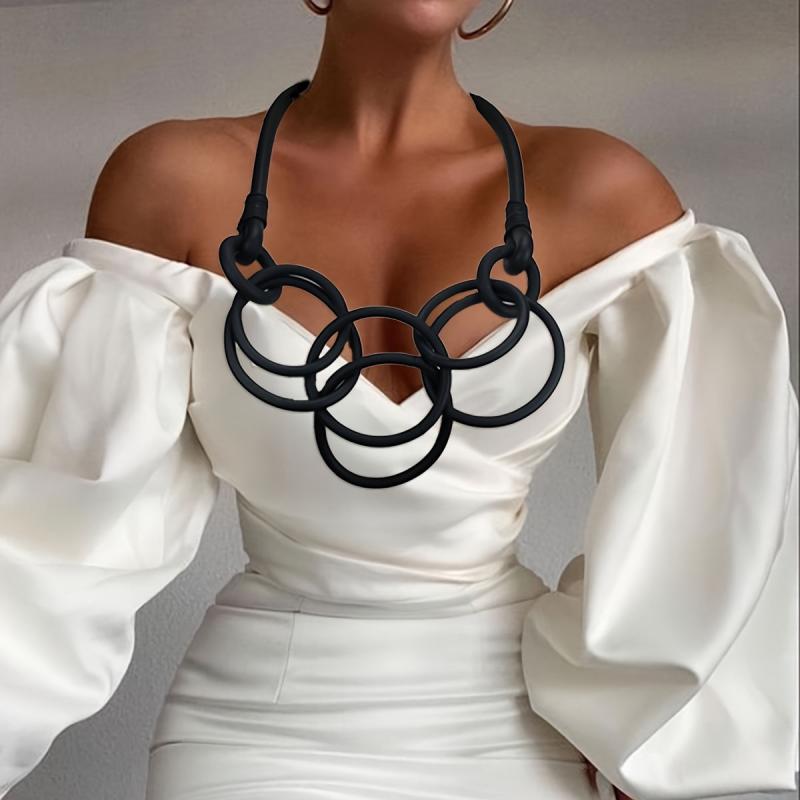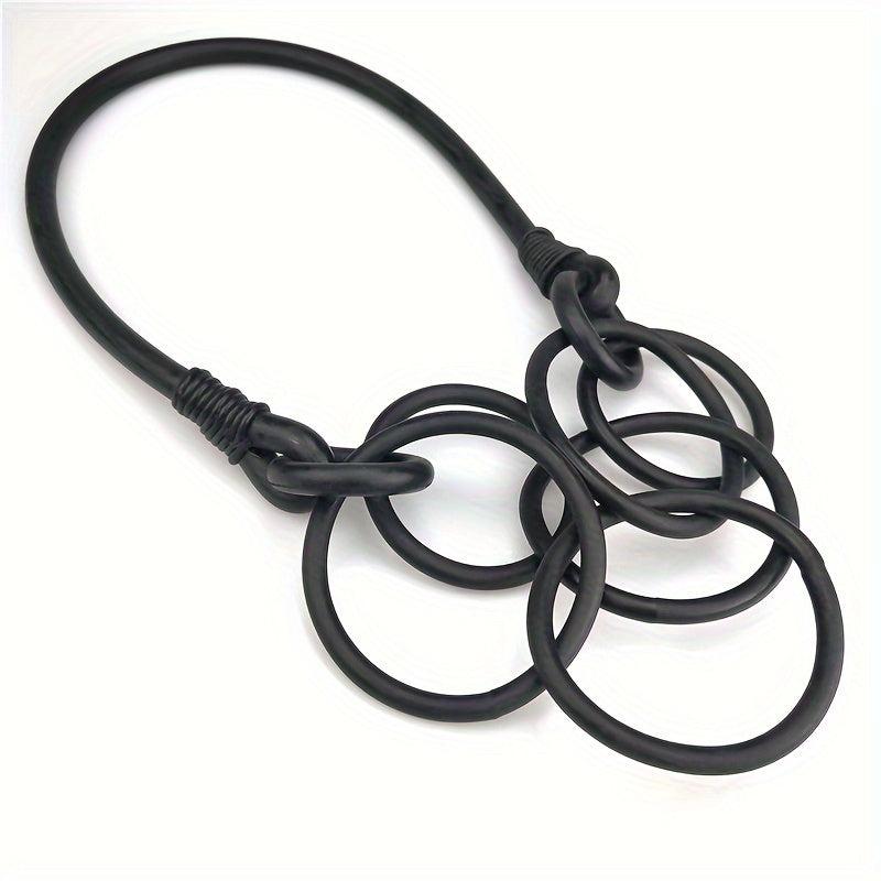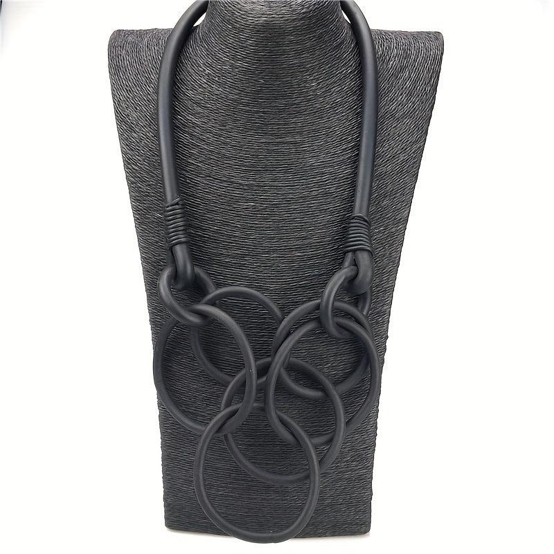 Elevate your casual attire or vacation look with this lightweight and comfortable three interlinked circle necklace. The rubber material adds a unique touch to your outfit.