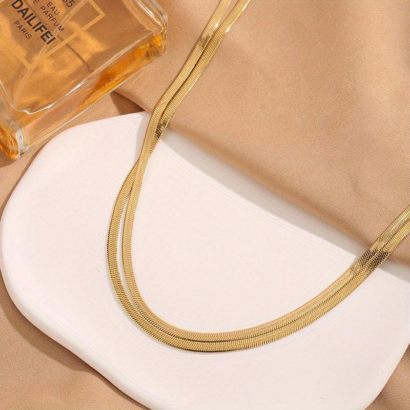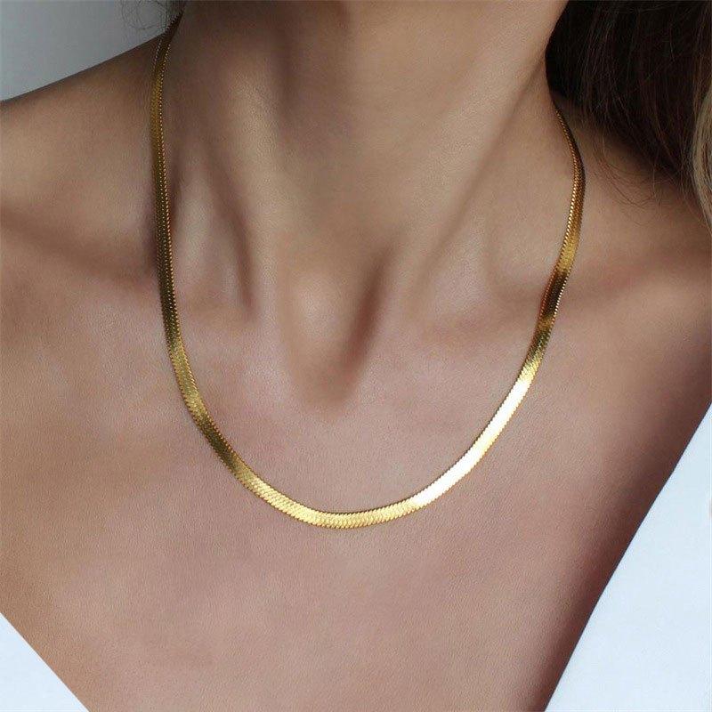 Women's Stainless Steel Herringbone Chain Necklace Retro Minimalist