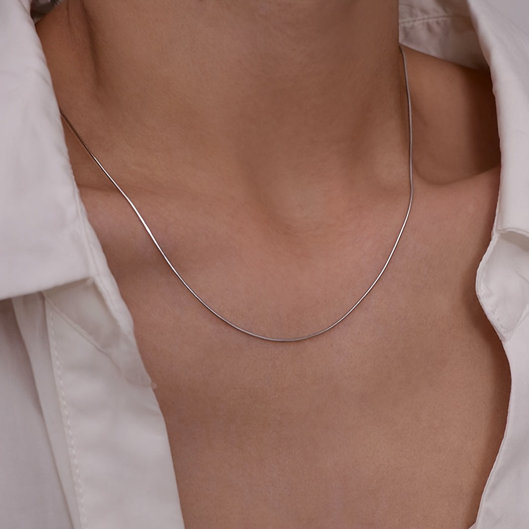 This snake chain necklace is a timeless piece suitable for weddings, parties, or casual attire. It is made of durable stainless steel with a minimalist craftsmanship.