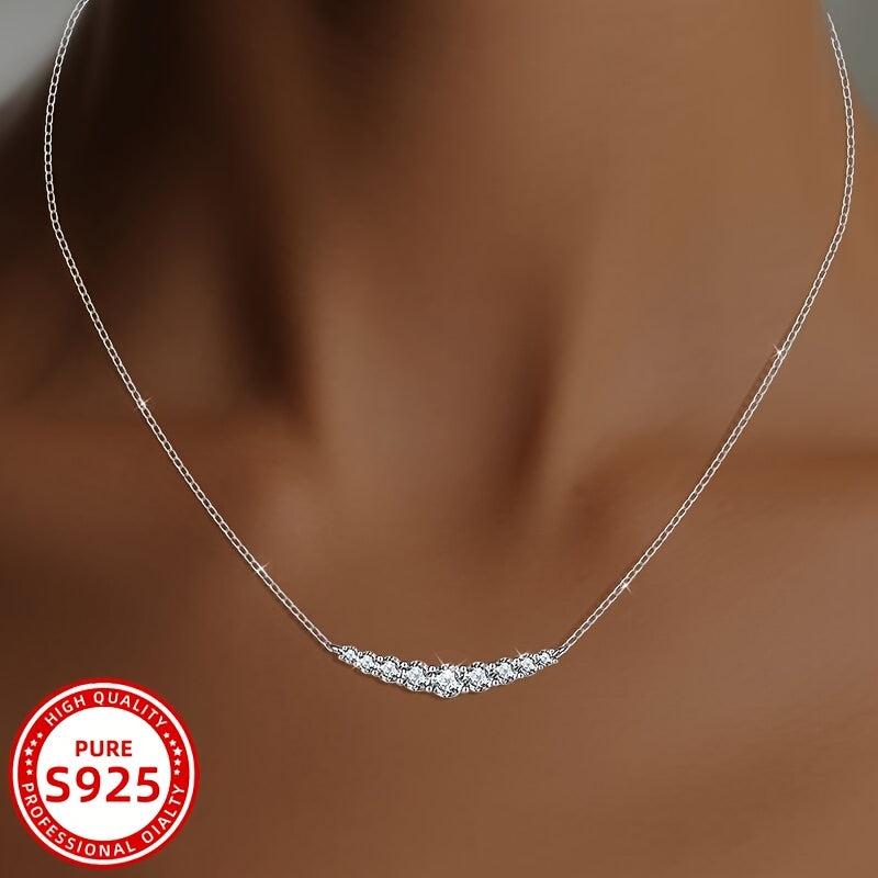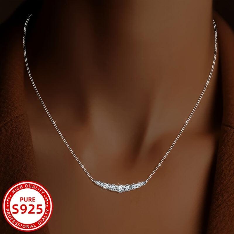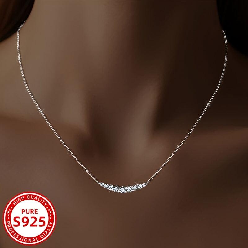 This curved smile zirconia necklace is made of 925 silver, perfect for daily wear, holidays, and gifts. It is suitable for all seasons and features a durable chain.