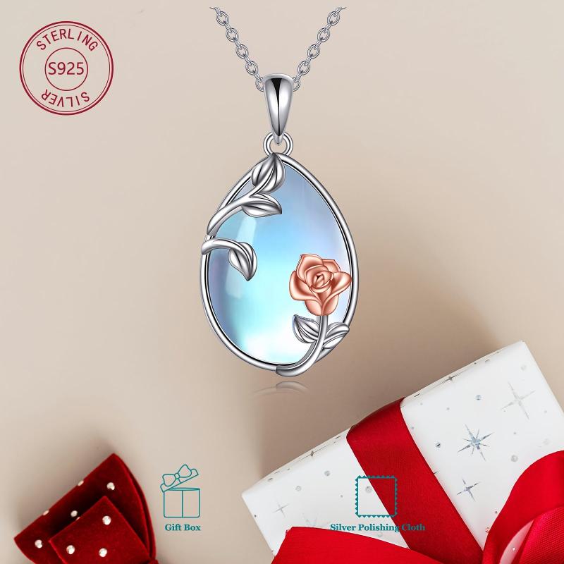 Adorn yourself with this elegant Moonstone Leaf Pendant Necklace crafted from 925 sterling silver. Perfect for women and teenage girls, this necklace makes a thoughtful jewelry gift.