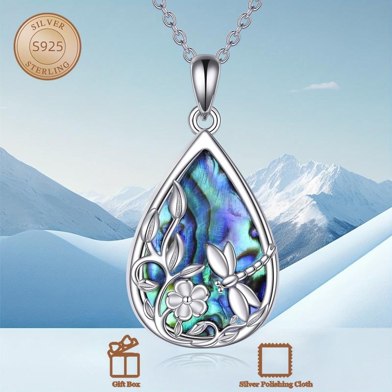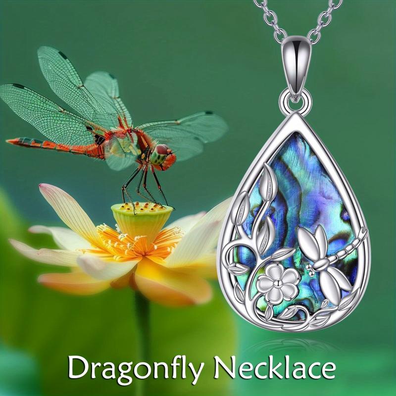 Add a touch of nature-inspired beauty to your outfit with this stunning dragonfly pendant necklace. Crafted from 925 sterling silver and featuring a mesmerizing abalone shell, this floral jewelry piece is perfect for gifting or adding a unique touch to your own collection.